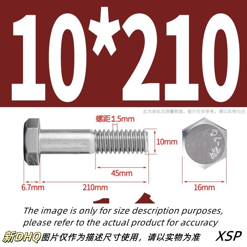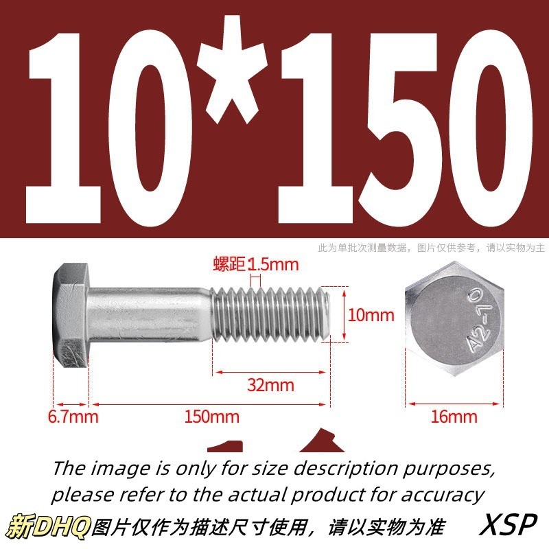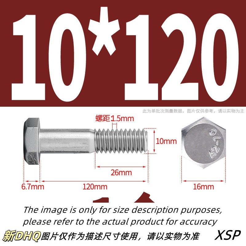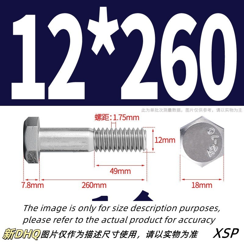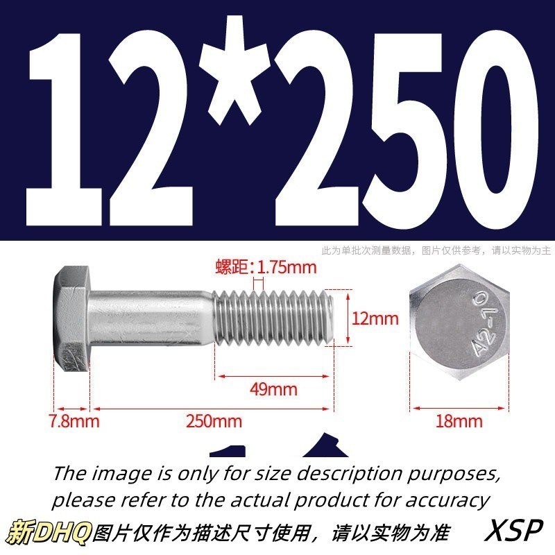 304 Stainless Steel Half Thread External Hexagon Bolt Extended Half Thread Screw Half Thread M10/M12 * L35-300mm (XZM-DM)