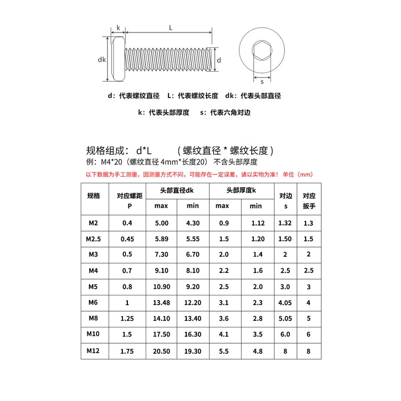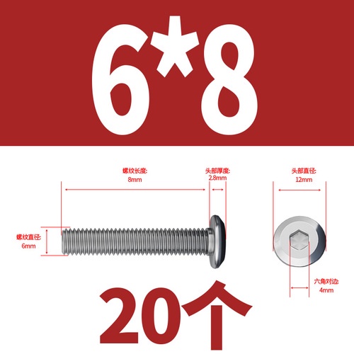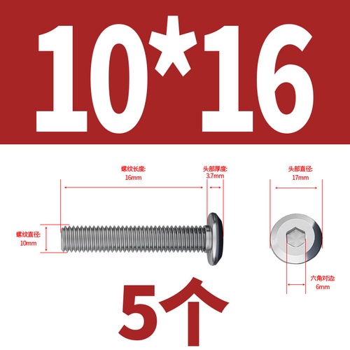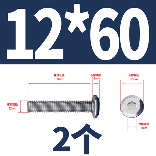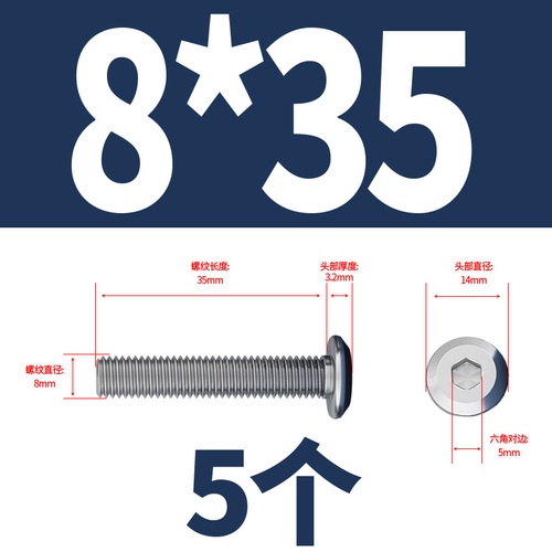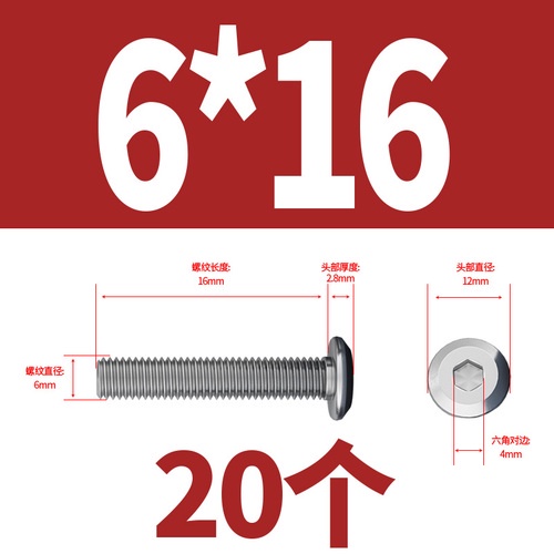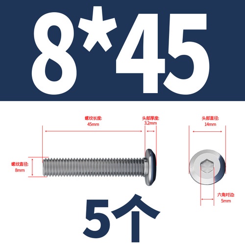304 Stainless Steel Hexagon Socket Screw Furniture Bolt Round Head Beveled Hexagon Screw M6/M8/M10/M12