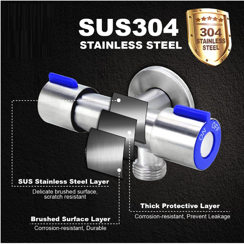 304 Stainless Steel Kitchen & Bathroom toilet Two Way Stop Angle Valve Water Tap Premium Quality Sink T-Joint Valve