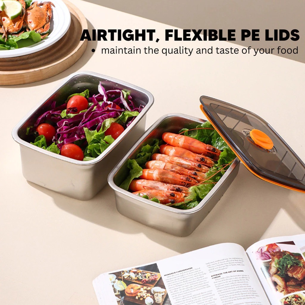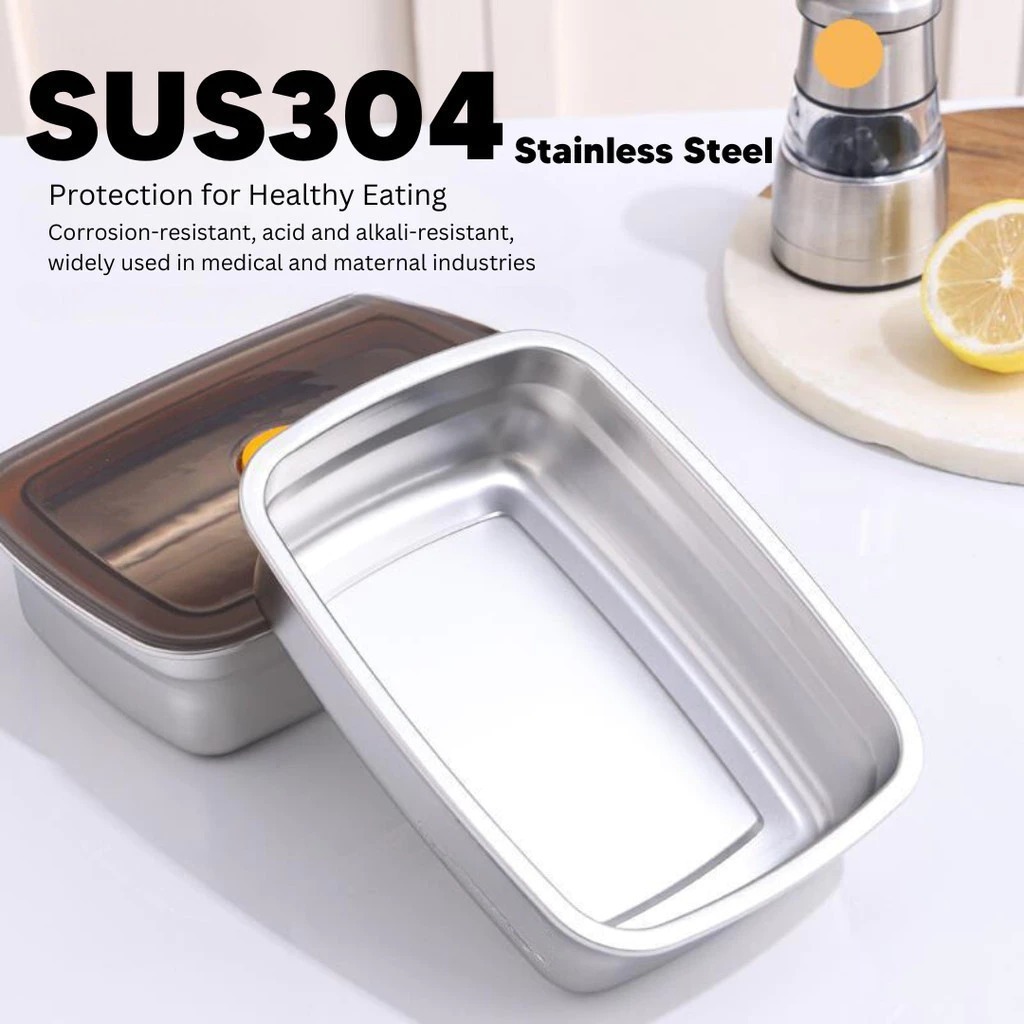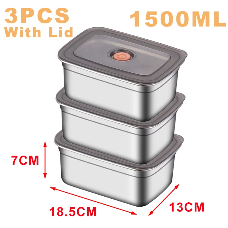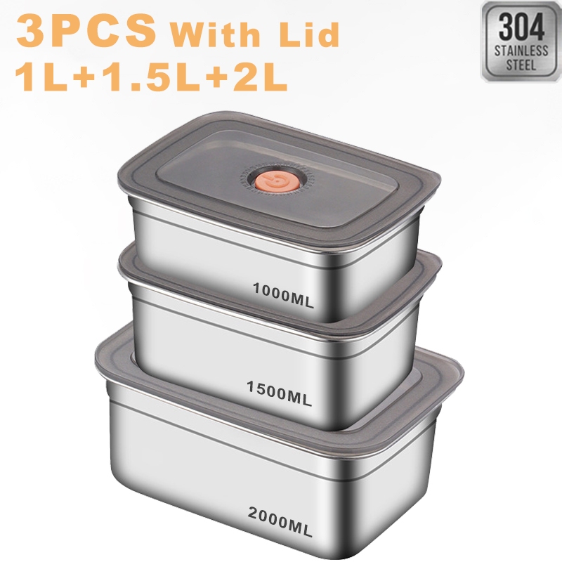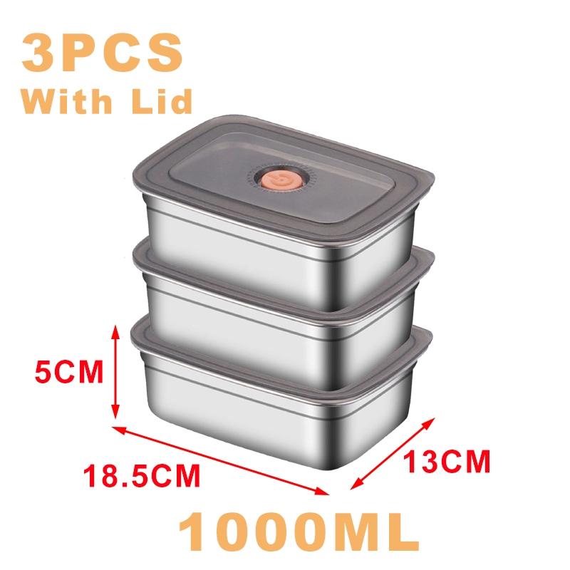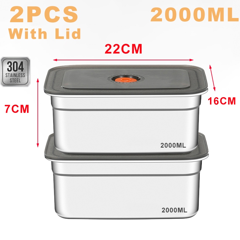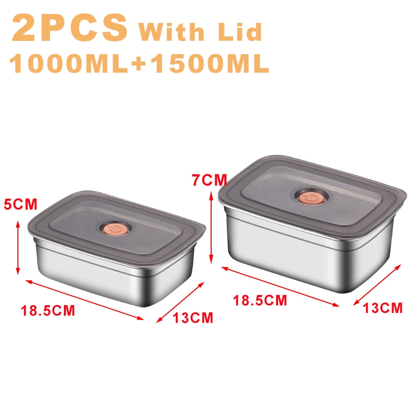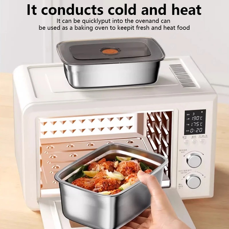 304 Stainless Steel Lunch Box With Cover Vacuum Antibacterial Container Food Storage Box Refrigerator Food Fresh-Keeping Box SUS316 Stainless Steel Sealed Leakproof Oven Food Stora