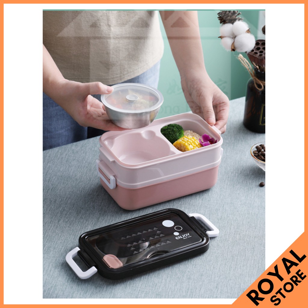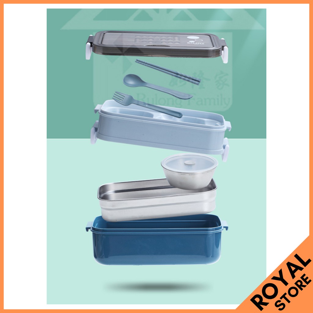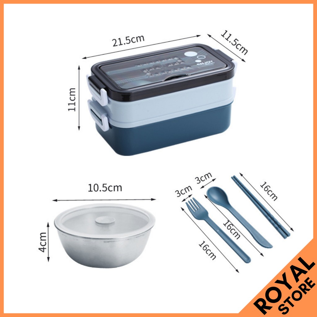 304 Stainless Steel Lunch Box with Soup Bowl Double Layer Bento Box Spoon Fork Chopstick Student Workers Food Storage