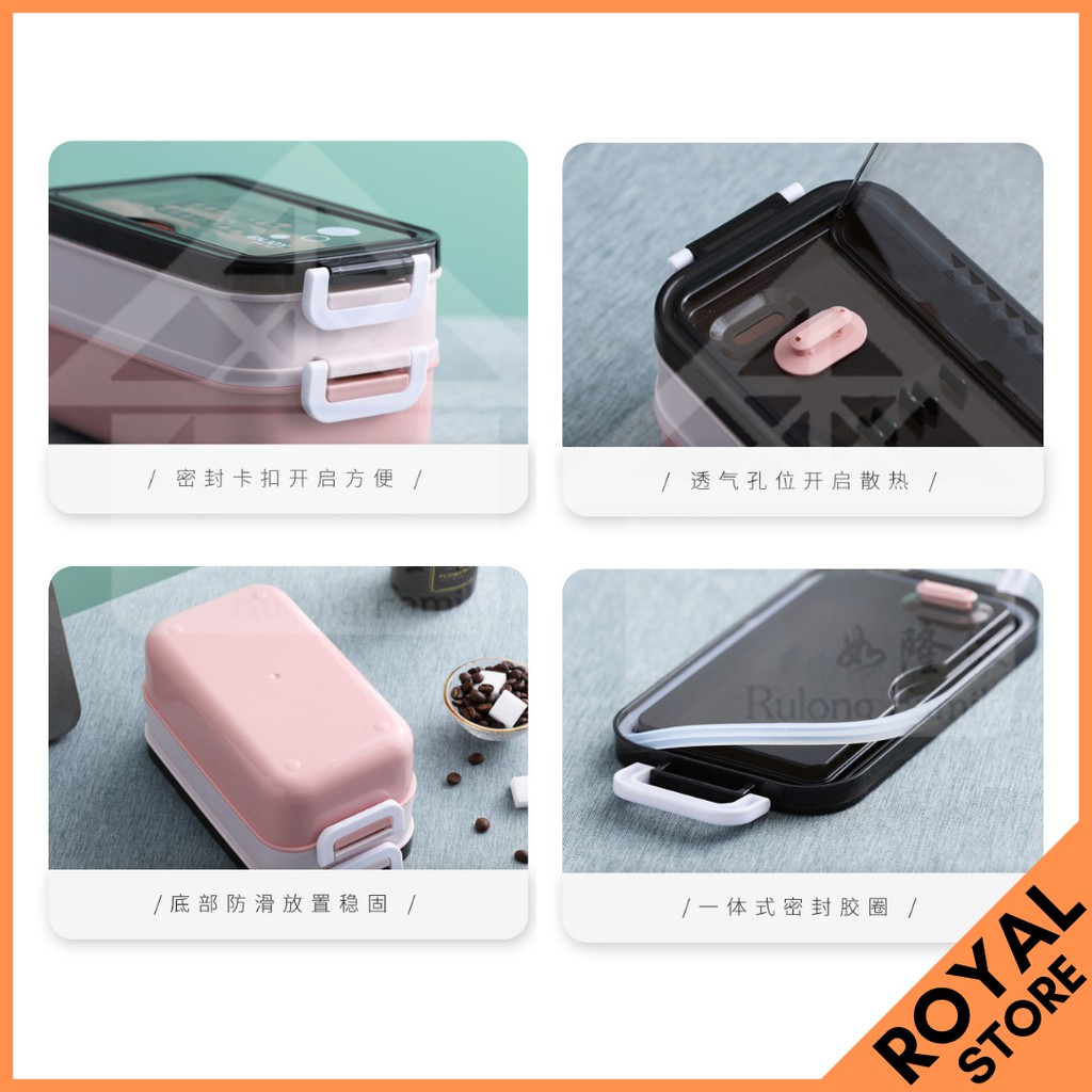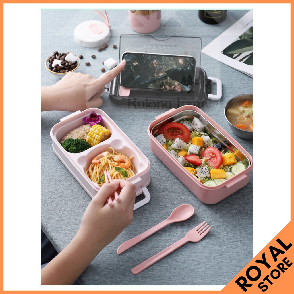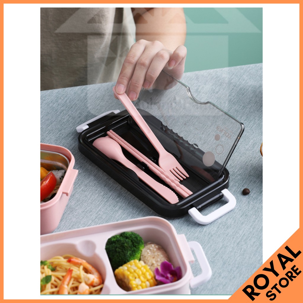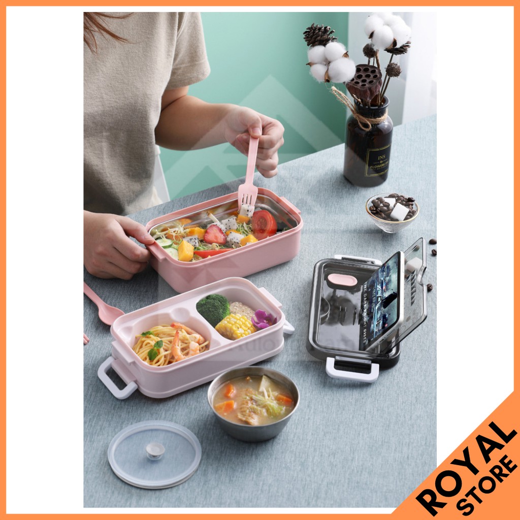 304 Stainless Steel Lunch Box with Soup Bowl Double Layer Bento Box Spoon Fork Chopstick Student Workers Food Storage