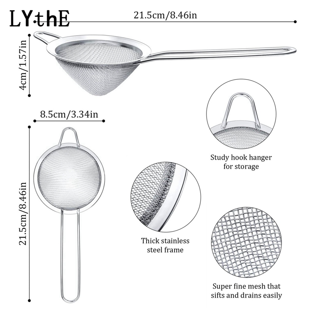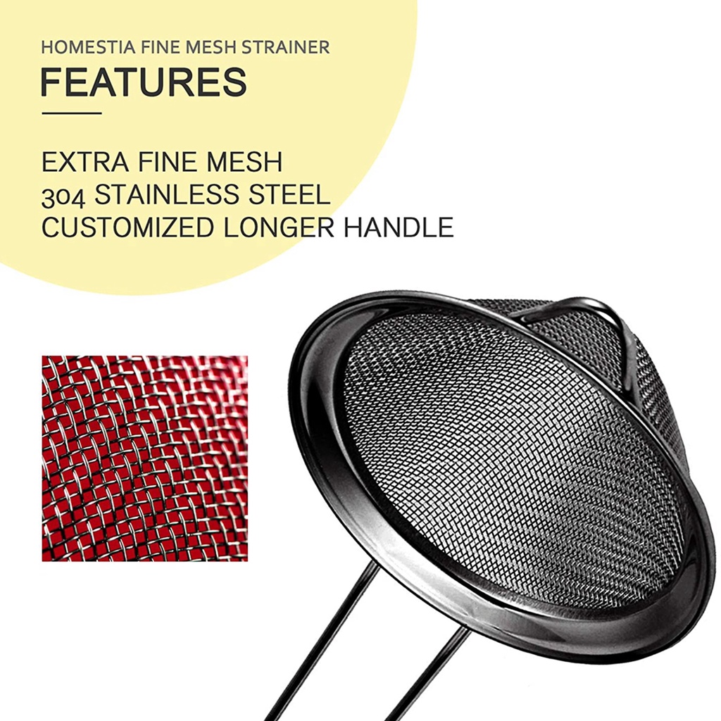 304 Stainless Steel Mesh Strainer Fine Tea Strainer with Long Handle Colanders Mesh Strainers Sieve for Cocktail Bar Coffee Juice Filtering Tools Powder Sieve