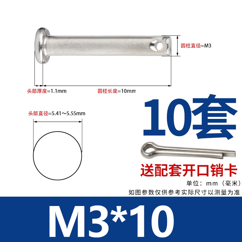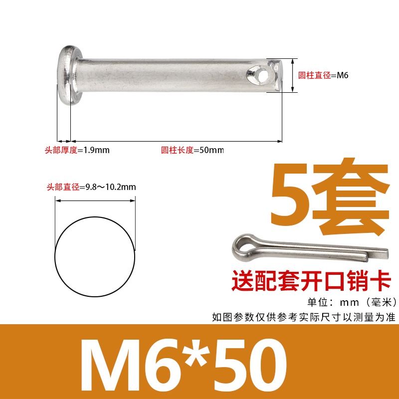 304 Stainless Steel Pin Shaft Flat Head With Hole Cylindrical Positioning Sub-Pin Nail M3M4M5M6M8M10