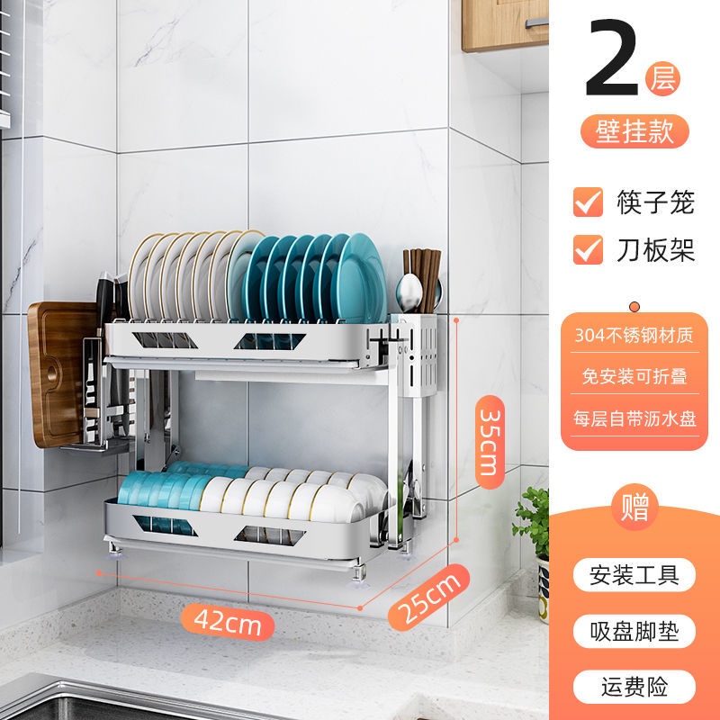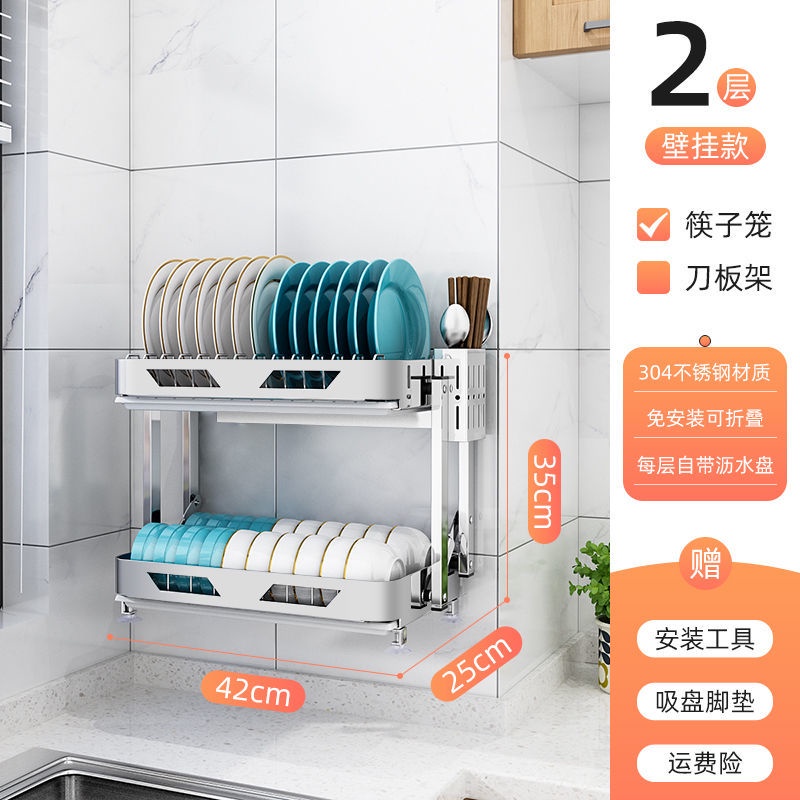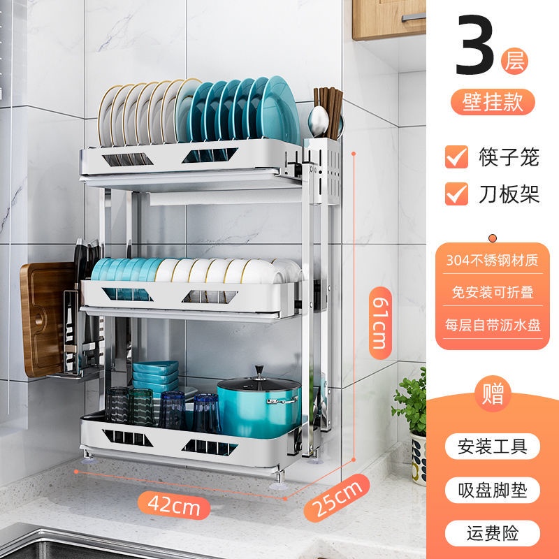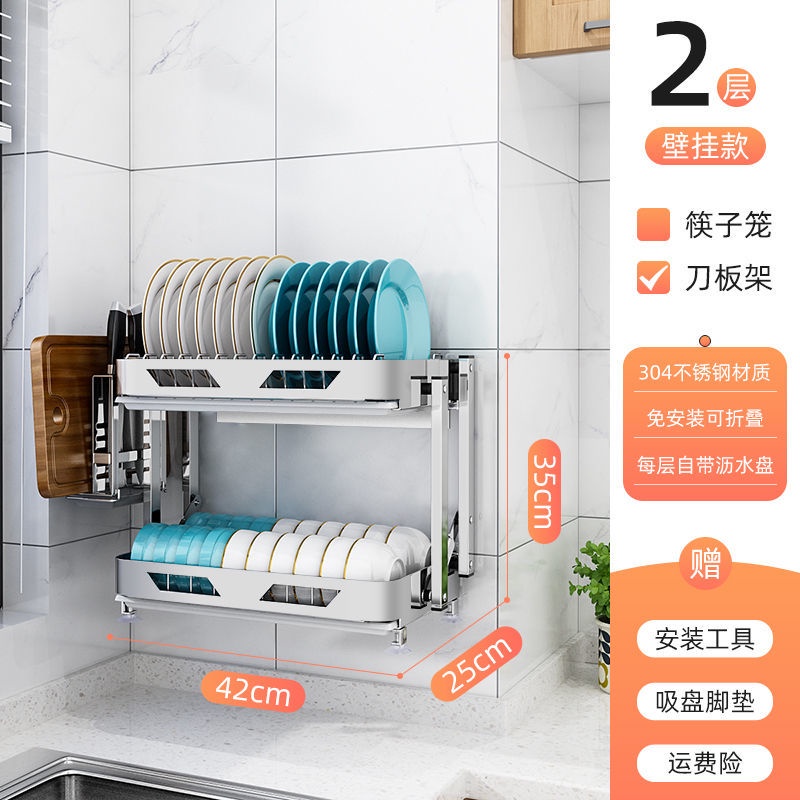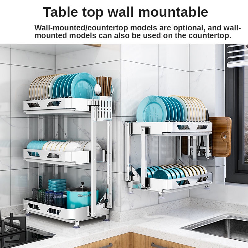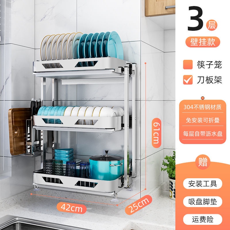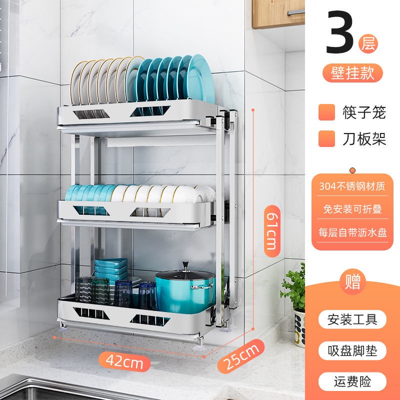 304 Stainless Steel Rak Pinggan Dish Rack Rak Kitchen Rak Foldable Wall-Mounted Rack /Table Top