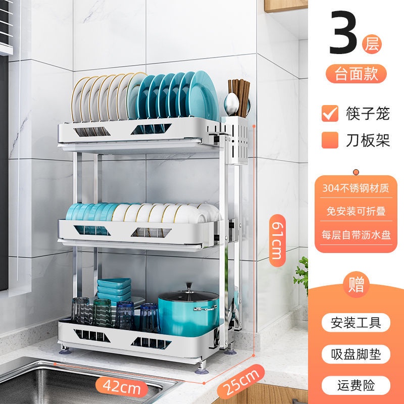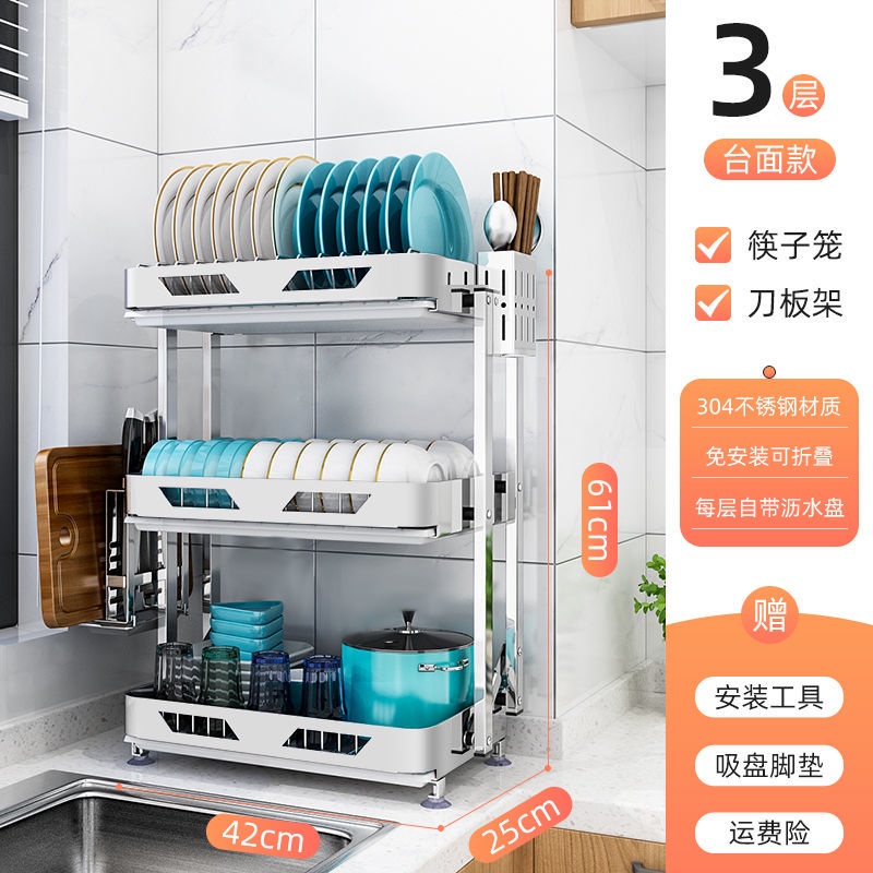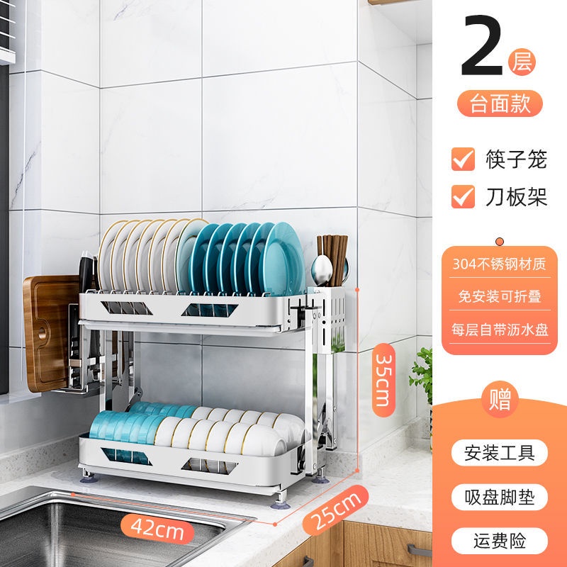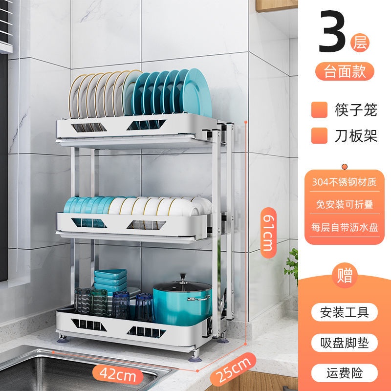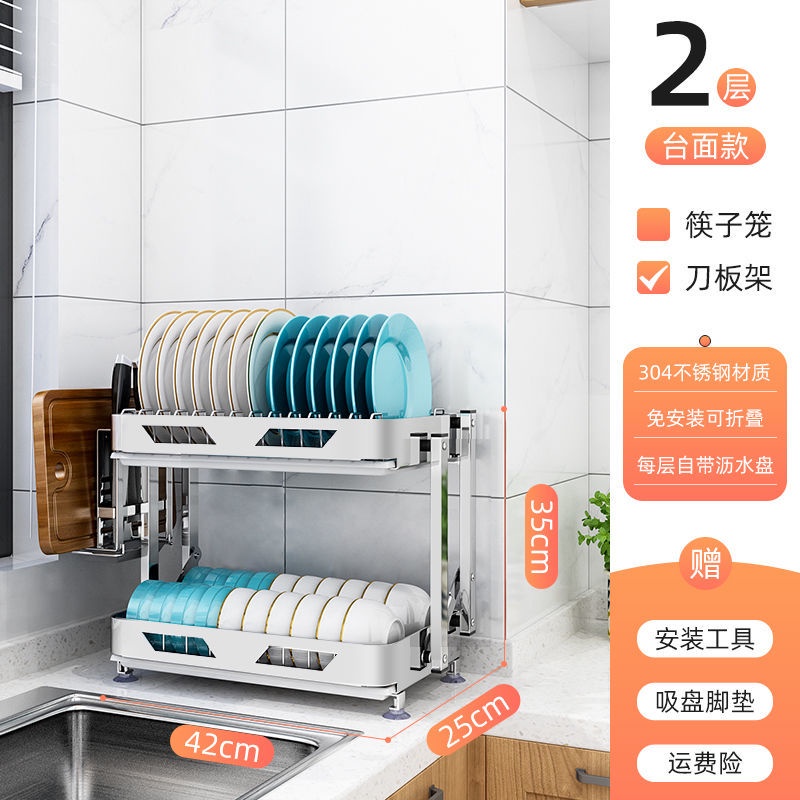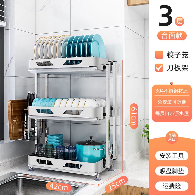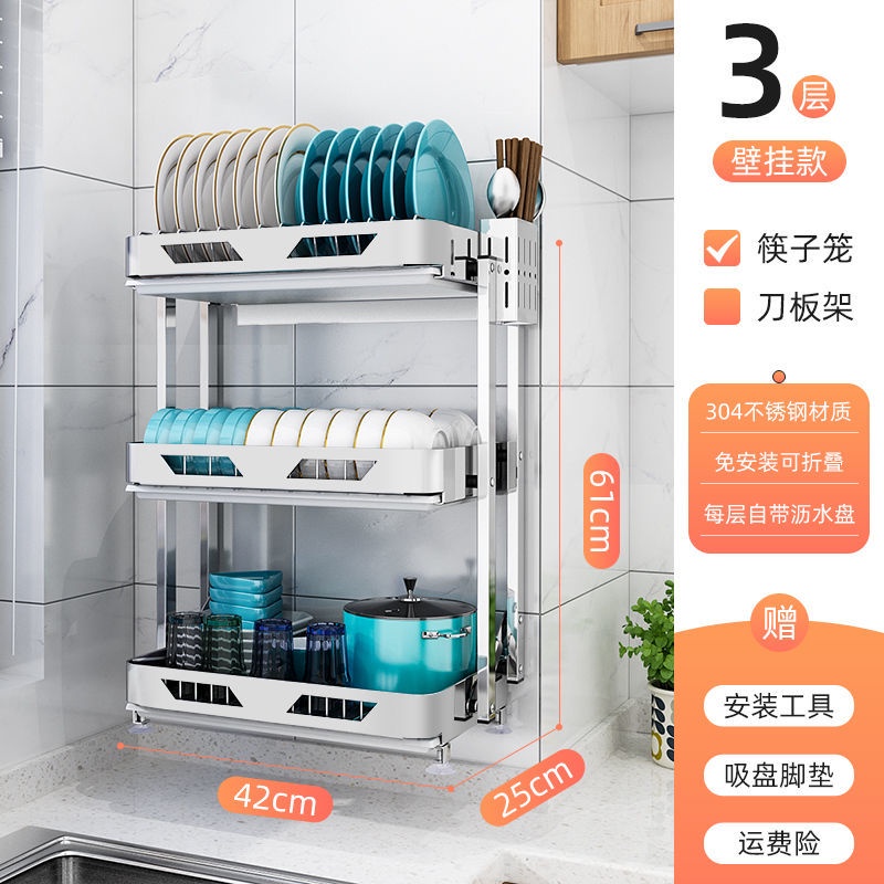 304 Stainless Steel Rak Pinggan Dish Rack Rak Kitchen Rak Foldable Wall-Mounted Rack /Table Top