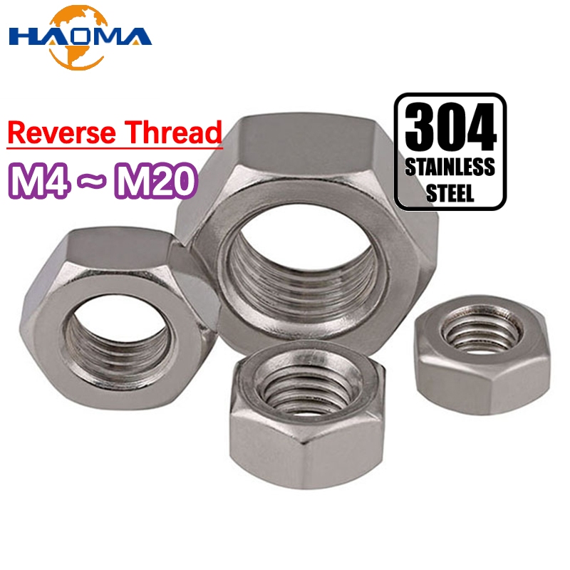304 Stainless Steel Reverse Opposite Hex Hexagon Nut Left Hand Thread Hex Nuts M4 M5 M6 M8 M10 M12 M14 M16 M18 M20