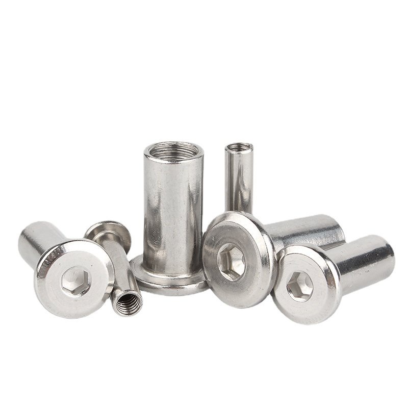 304 Stainless Steel Splint Chamfering Nut Pair Lock Furniture Screw Pair Knock Hexagon Socket Nail M3M4M5M6M8