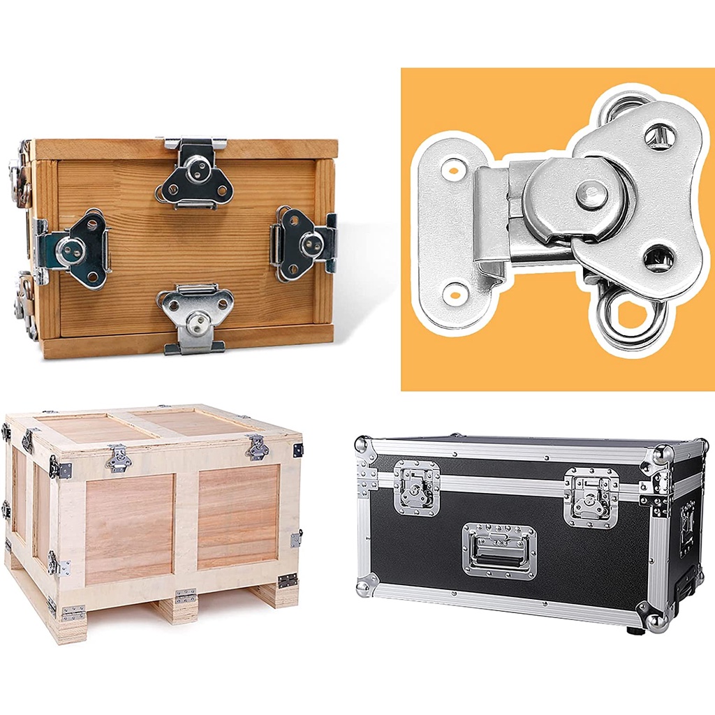 304 Stainless Steel Spring Loaded Butterfly Twist Latch Keeper Toggle Clamp Draw Latch Rotary Clasp Toolbox Lock Hasp for Chest Trunk Flight Case Wooden Box Equipment Boxes