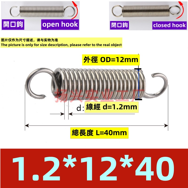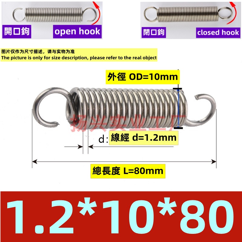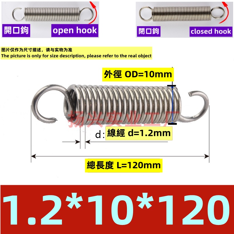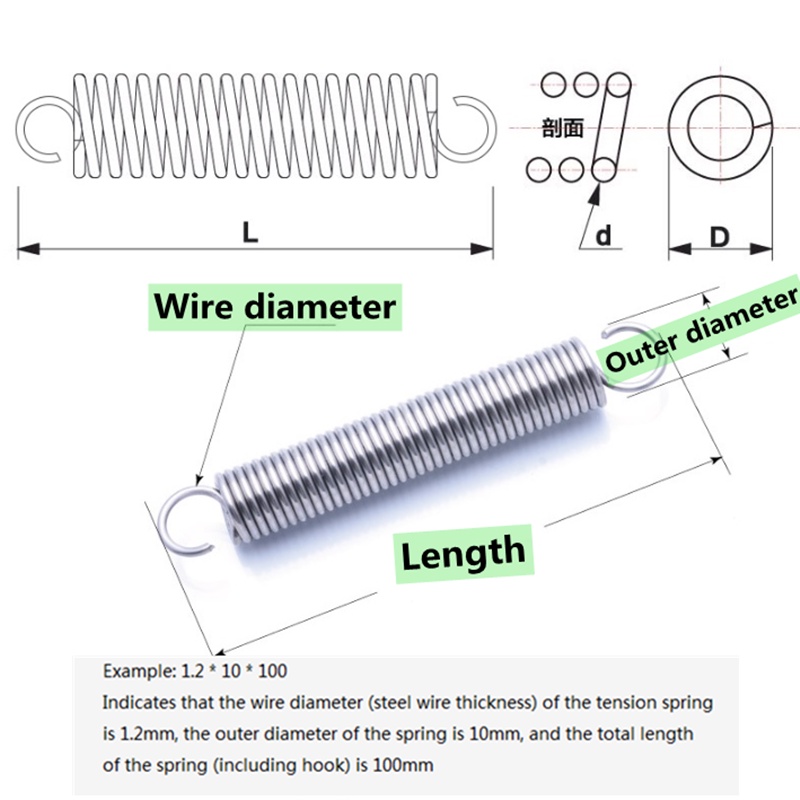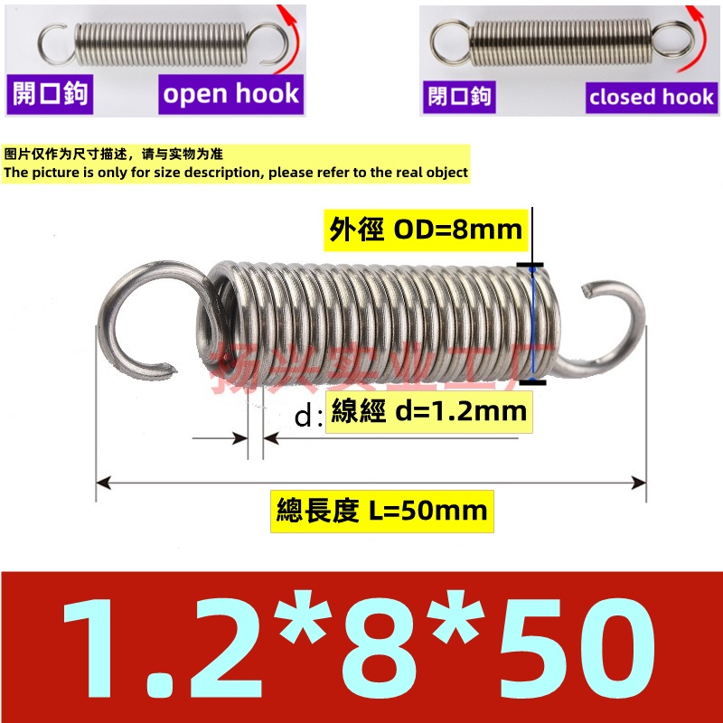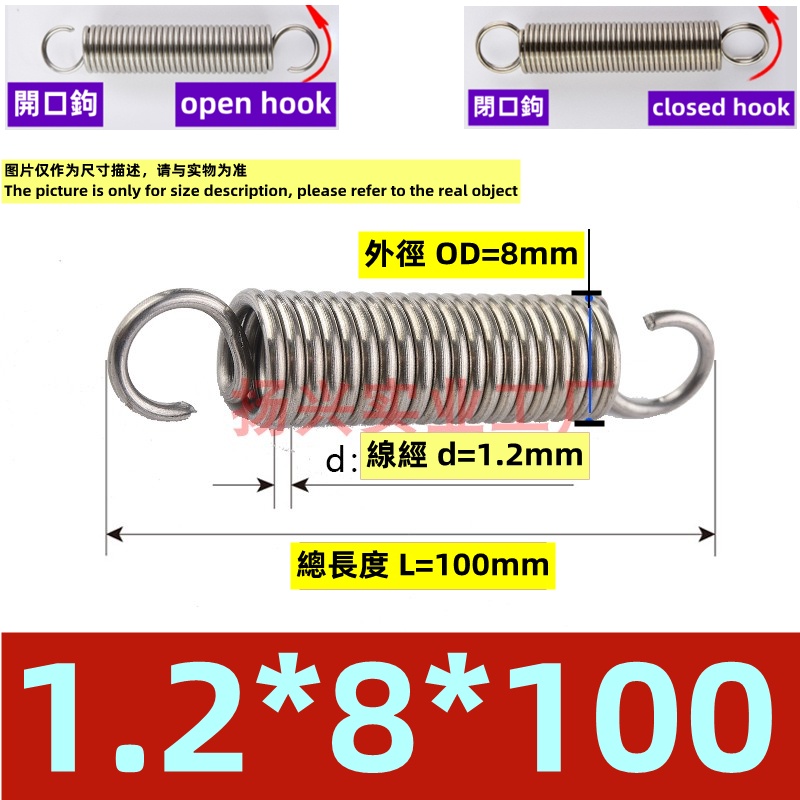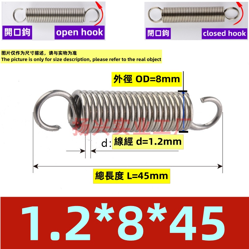 304 Stainless Steel Tension Spring Sheath Spring Diameter 1.2mm Hook Protective Sleeve Spring Open Hook Tension Tension Spring Outer Diameter 8/10/12mm Length 30~120mm