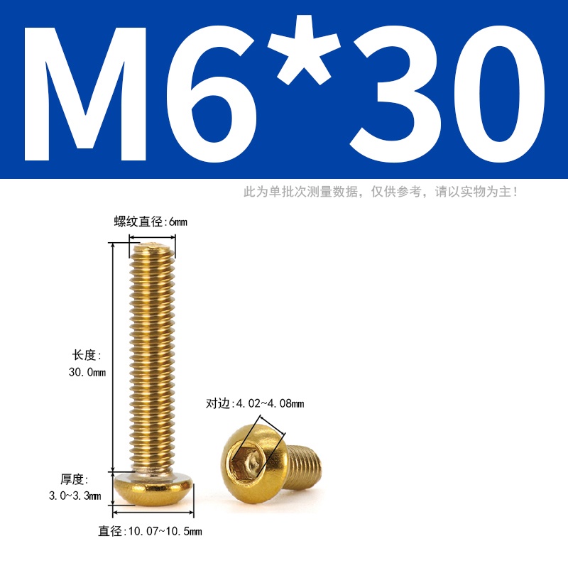 304 Stainless Steel Titanium Half Round Head Hexagon Socket Screw Round Head Screw Mushroom Head Screw Locomotive Screw Titanium Screw Gold Plated Screw Titanium Plated Screw M4/M5