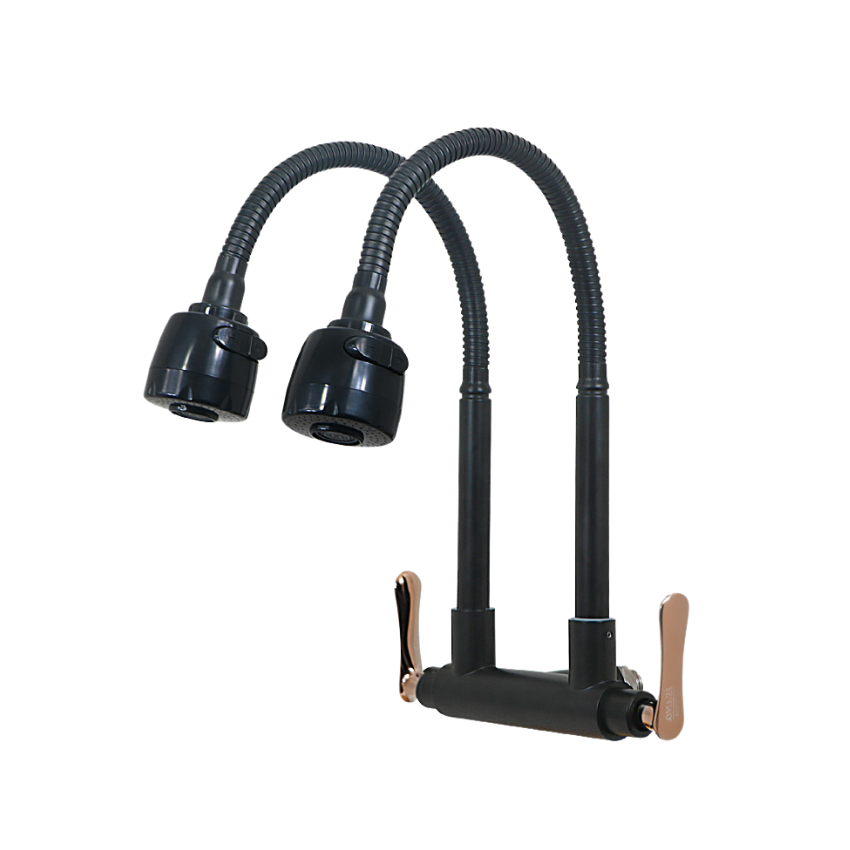 304 Stainless Steel Twin Double Pillar Mounted Tap Single Sink Flexible Sink Tap Black Series