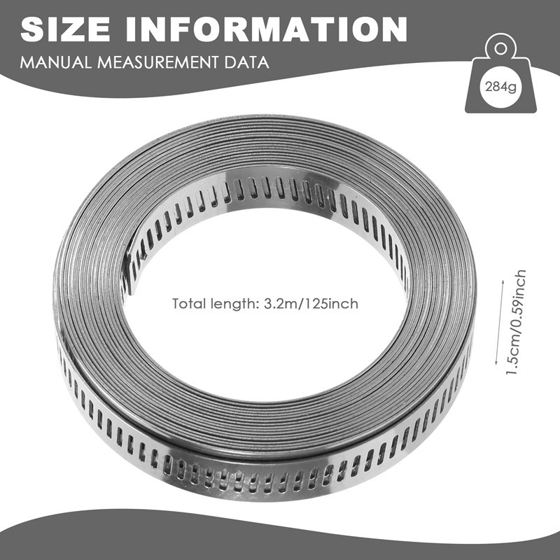 304 Stainless Steel Worm Clamp Hose Clamp Strap with Fasteners Adjustable DIY Pipe Hose Clamp Ducting Clamp 11.5 Feet