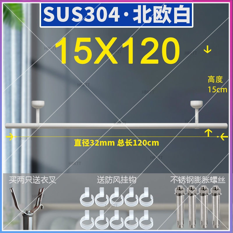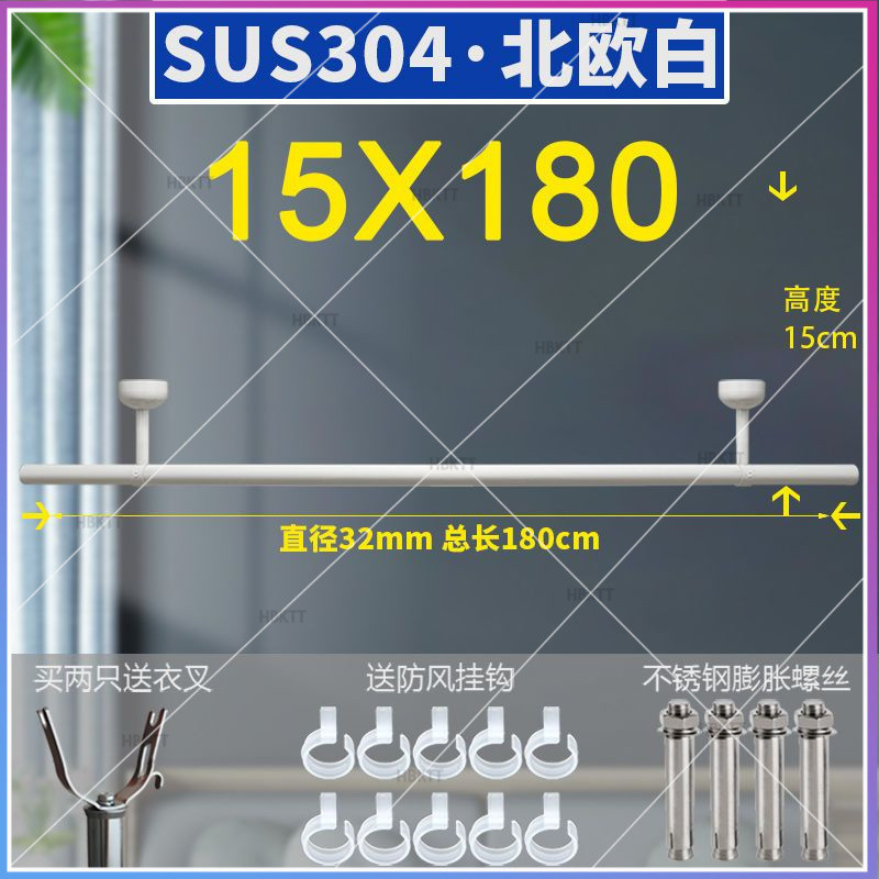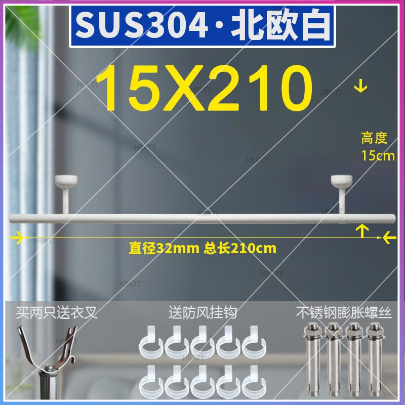 304 stainless steel clothes drying pole balcony fixed thickened 32mm outdoor drying rack