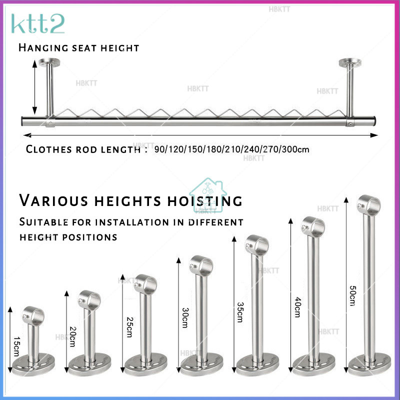 304 stainless steel clothes drying pole balcony outdoor ceiling installation drying rack fixed windproof wave bar single pole double pole