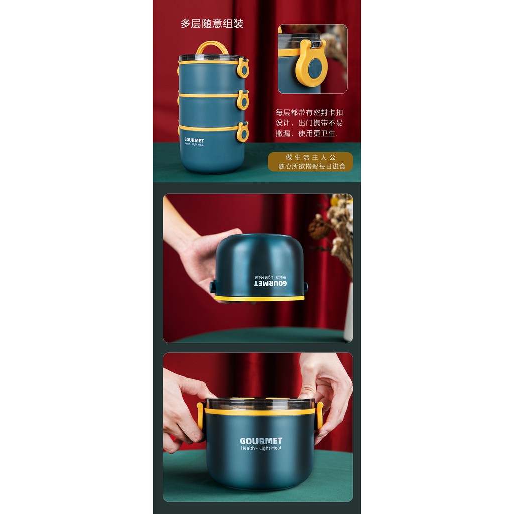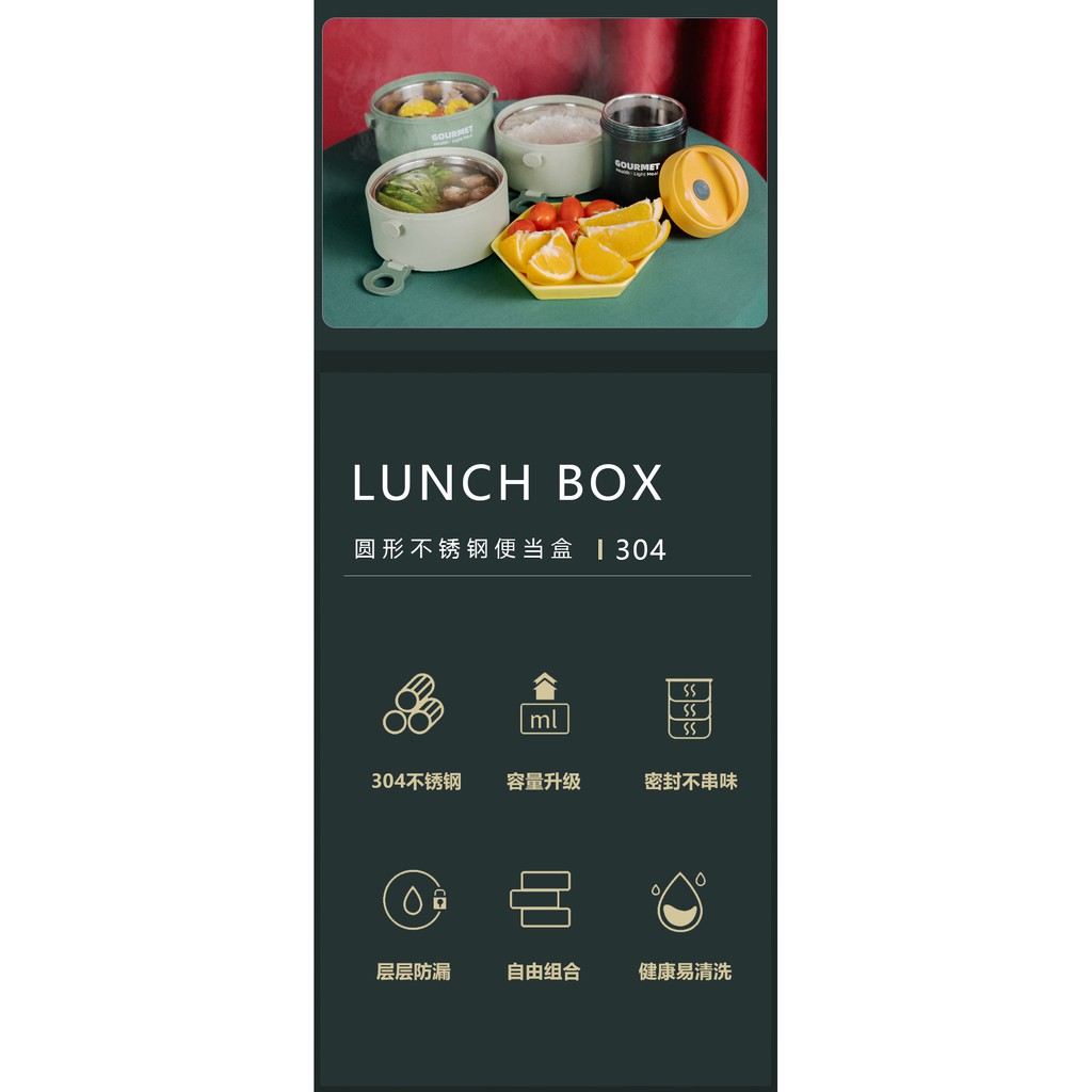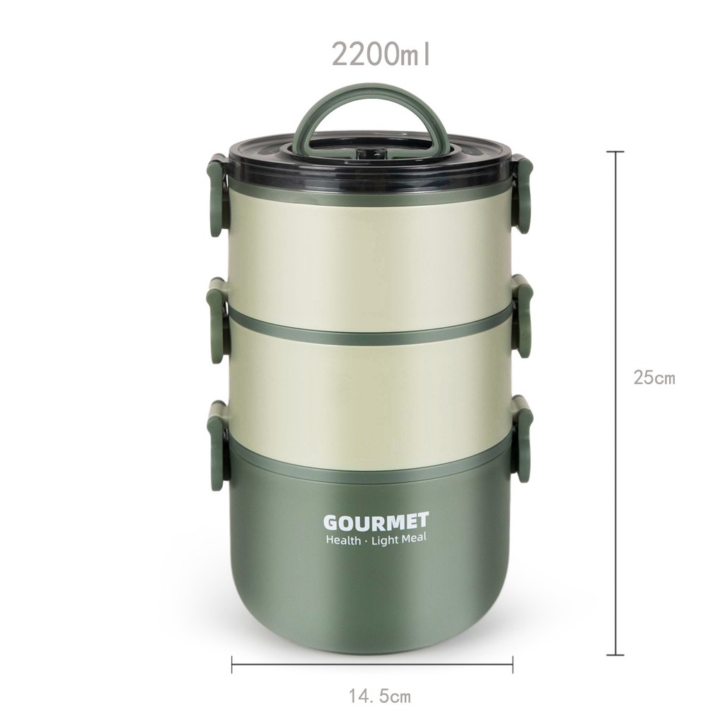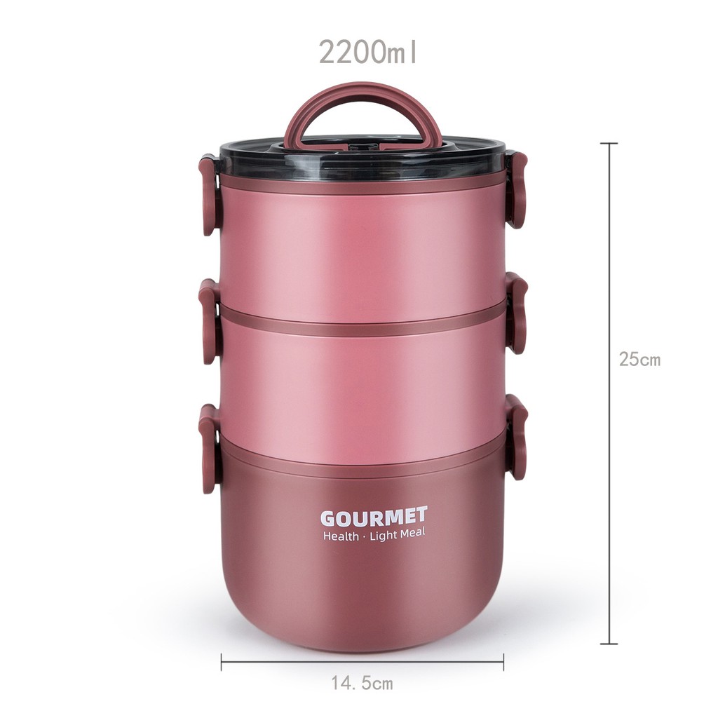 304 stainless steel insulated lunch box with lid, double-layer three-layer plastic lunch box for students, multi-layer lunch box, insulated bucket
