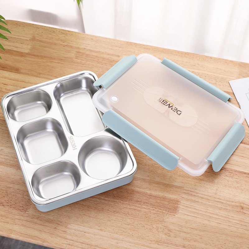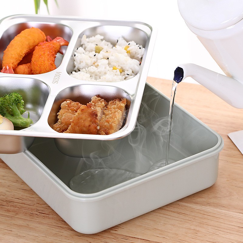 304 stainless steel multi-divided lunch box with lid heat preservation fresh-keeping box student lunch box portable lunc