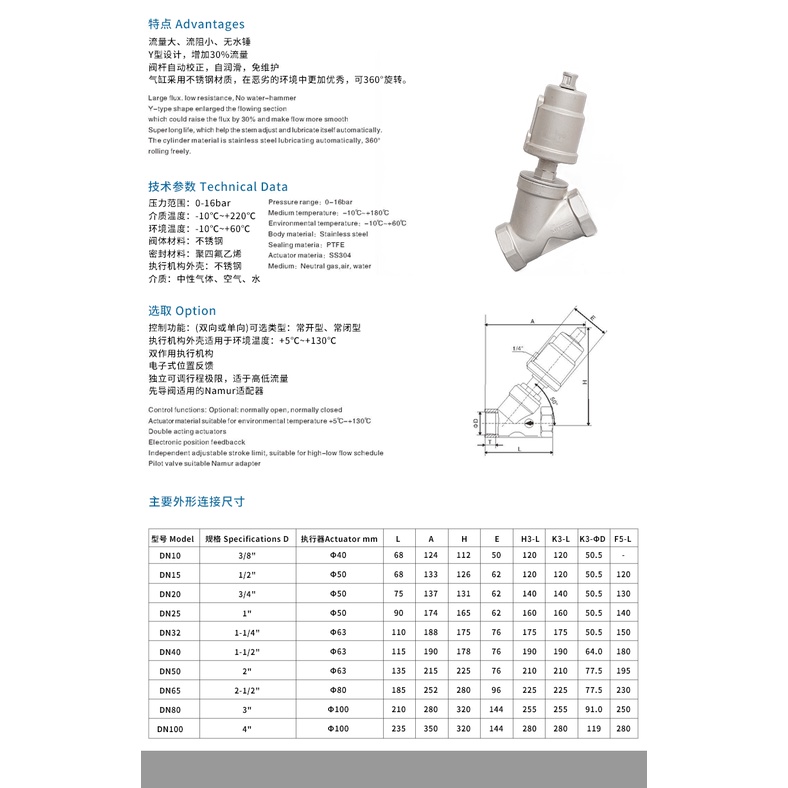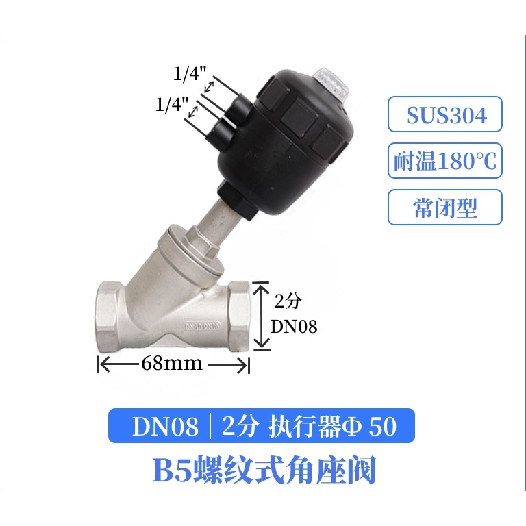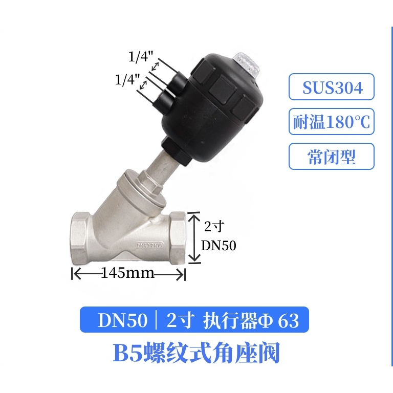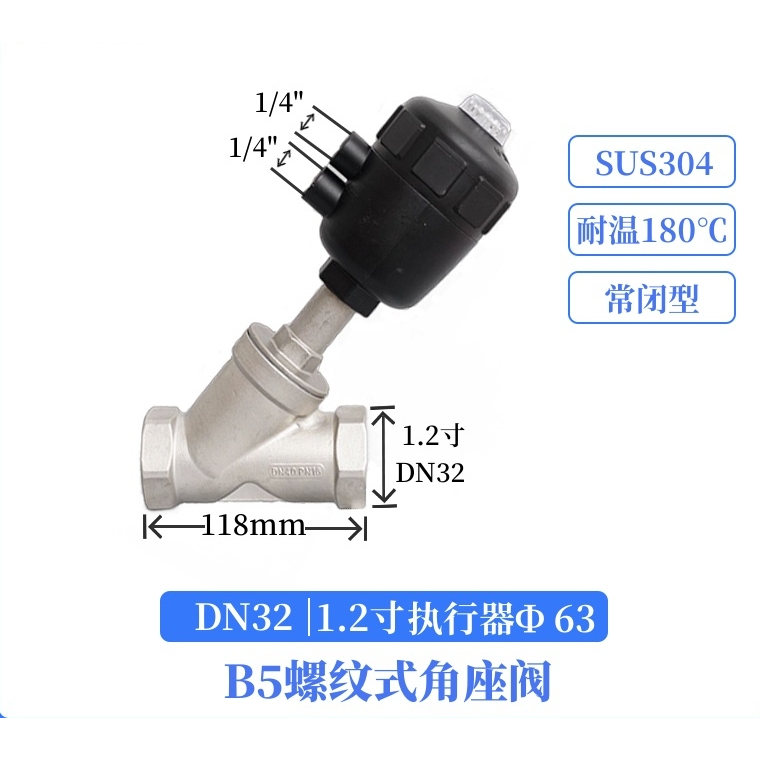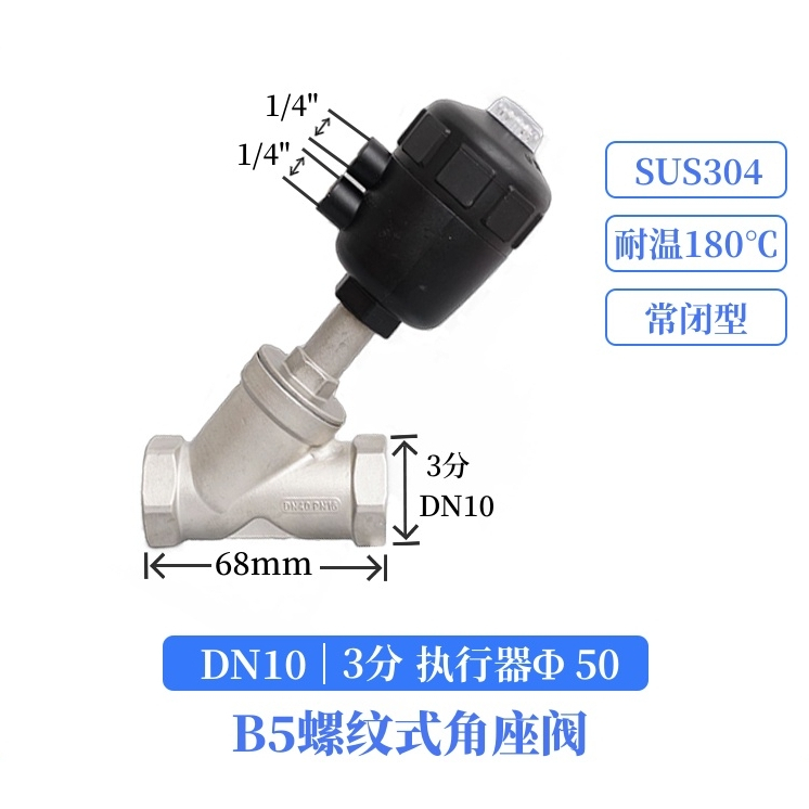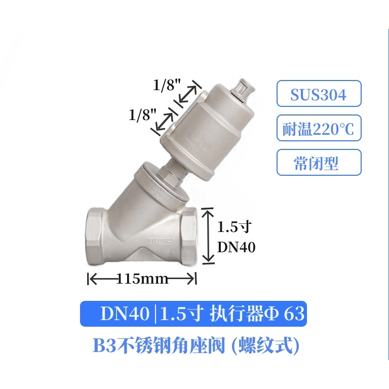 304 stainless steel pneumatic angle seat valve y-type large head steam high temperature cut-off valve DN15 DN20 DN25 DN32 DN40 DN50 normally closed