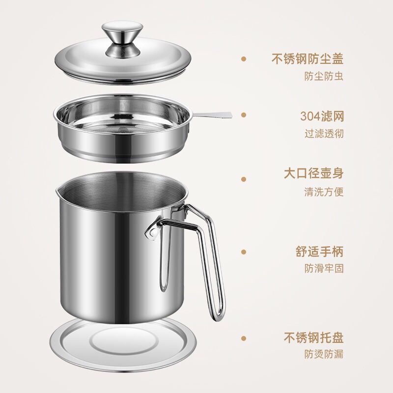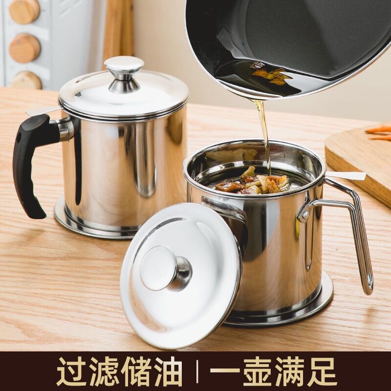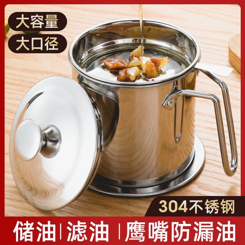 304Stainless Steel Oiler Stainless Steel Filter Oiler Filter Screen with Lid Leak-Proof Household Kitchen, Kitchenware Bulk Loading the Oil Storage Tanks in the Direct Vicinity Tong minyak keluli tahan karat