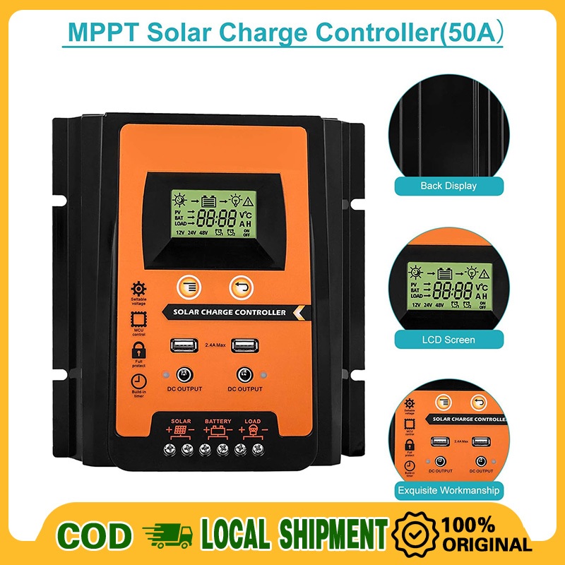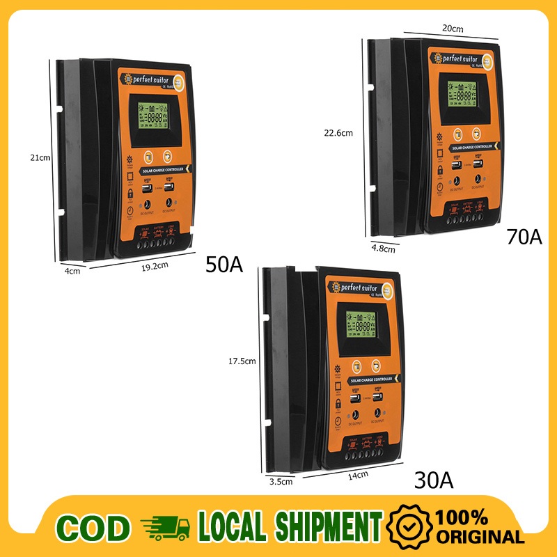 30A 50A 70A Solar Charge Solar Panel Controller 12V/24V Adjustable LCD Display Battery Regulator Dual USB Port