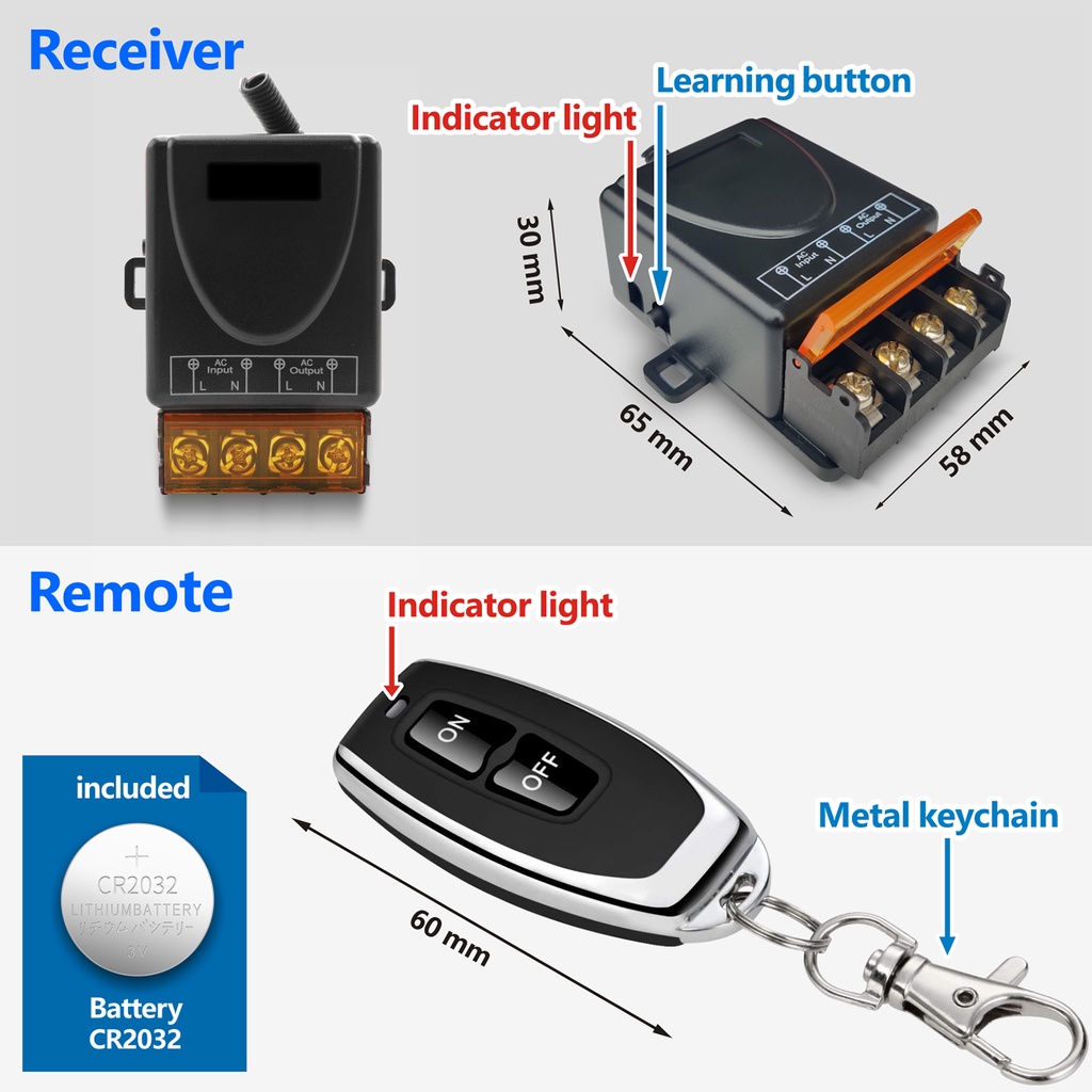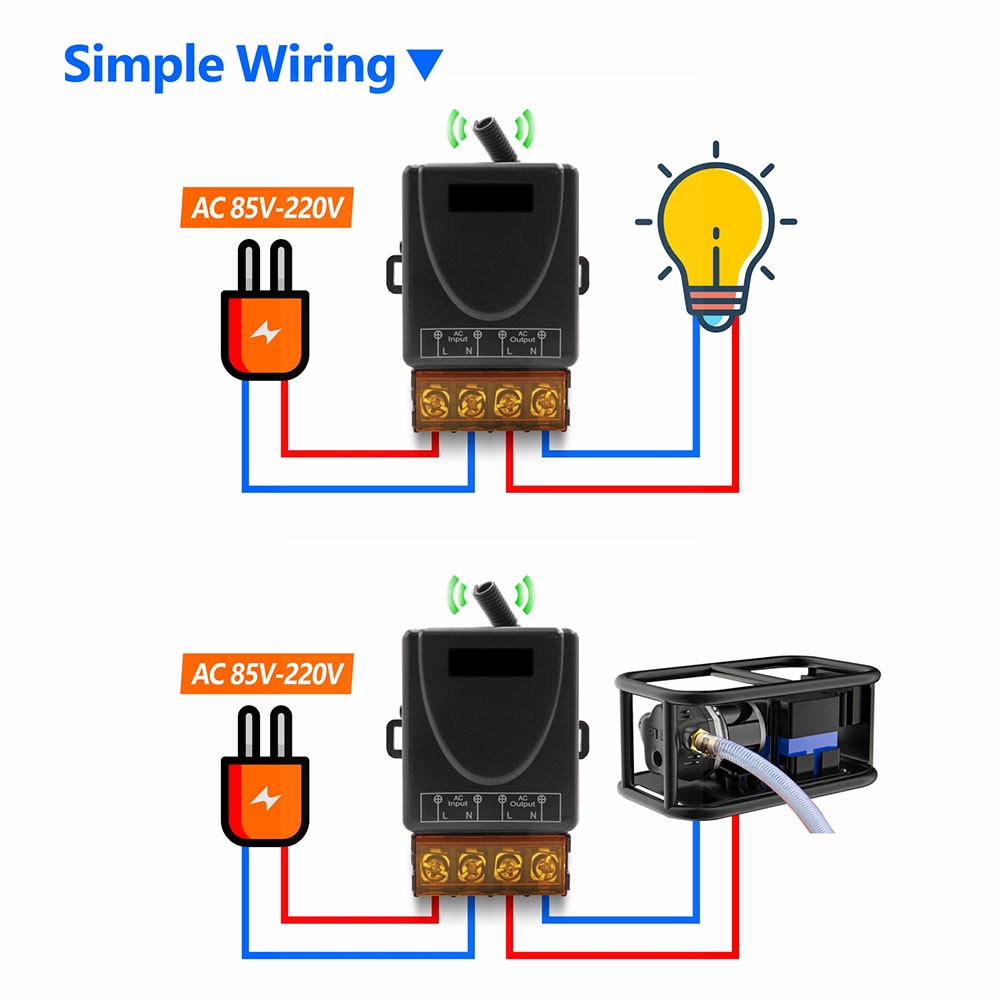 30A Relay Receiver AC 220V Wireless Relay Remote Control Switch 1 Channel 433Mhz RF Relay Receiver for Water Pump Heater Light Easy to Install