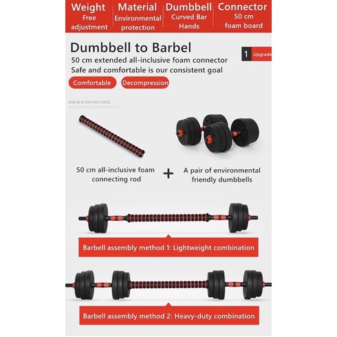 30KG Adjustable Dumbbell Set Barbell Set With Long Bar