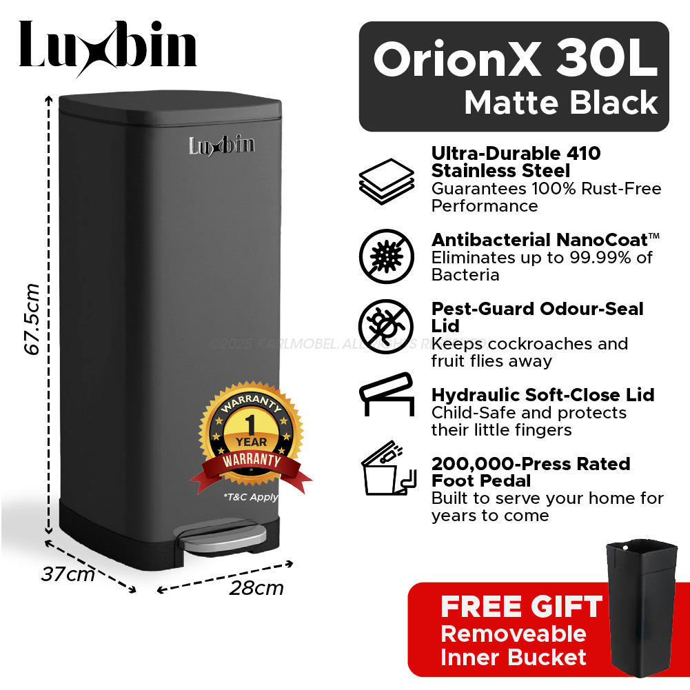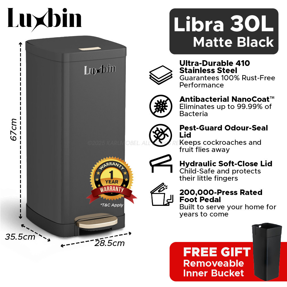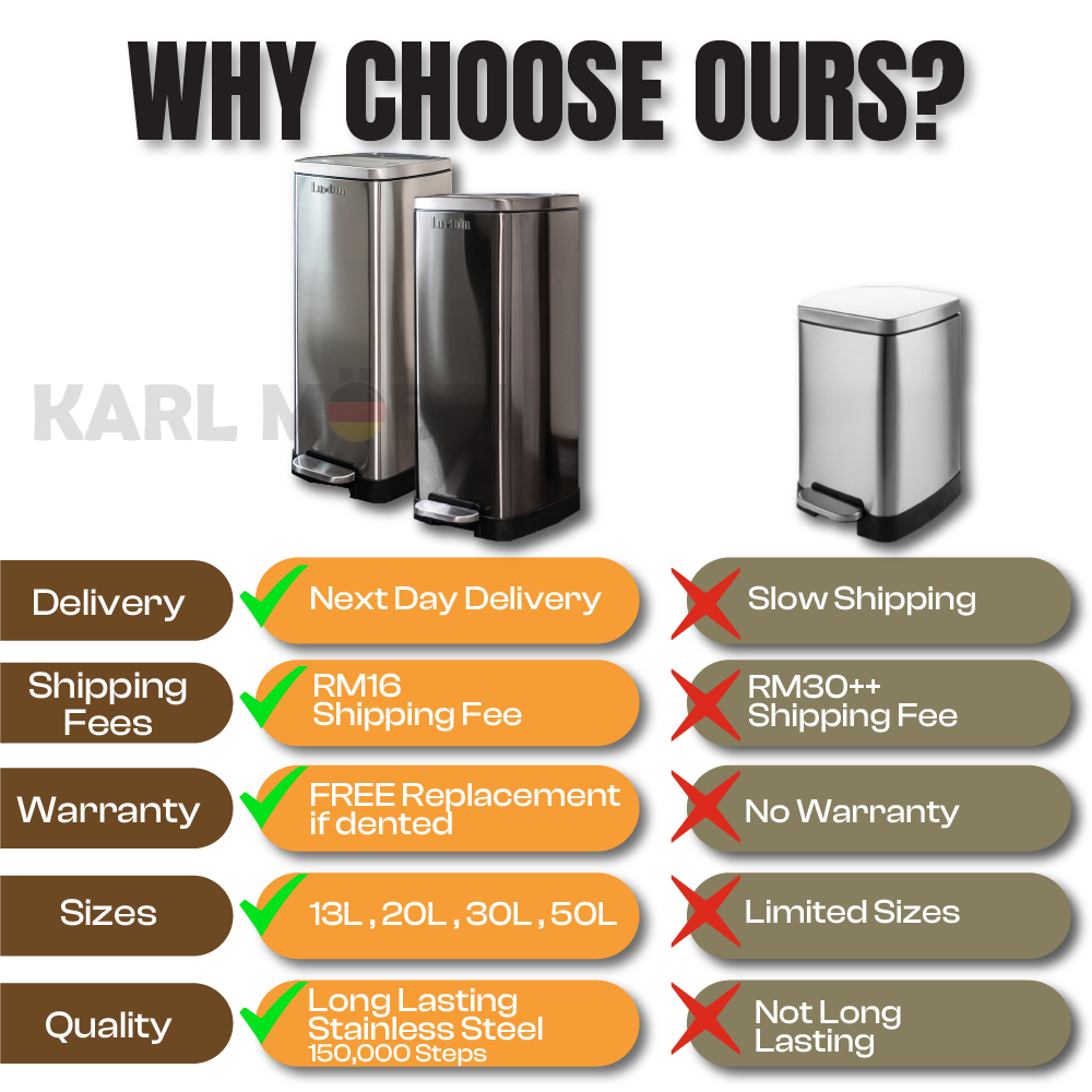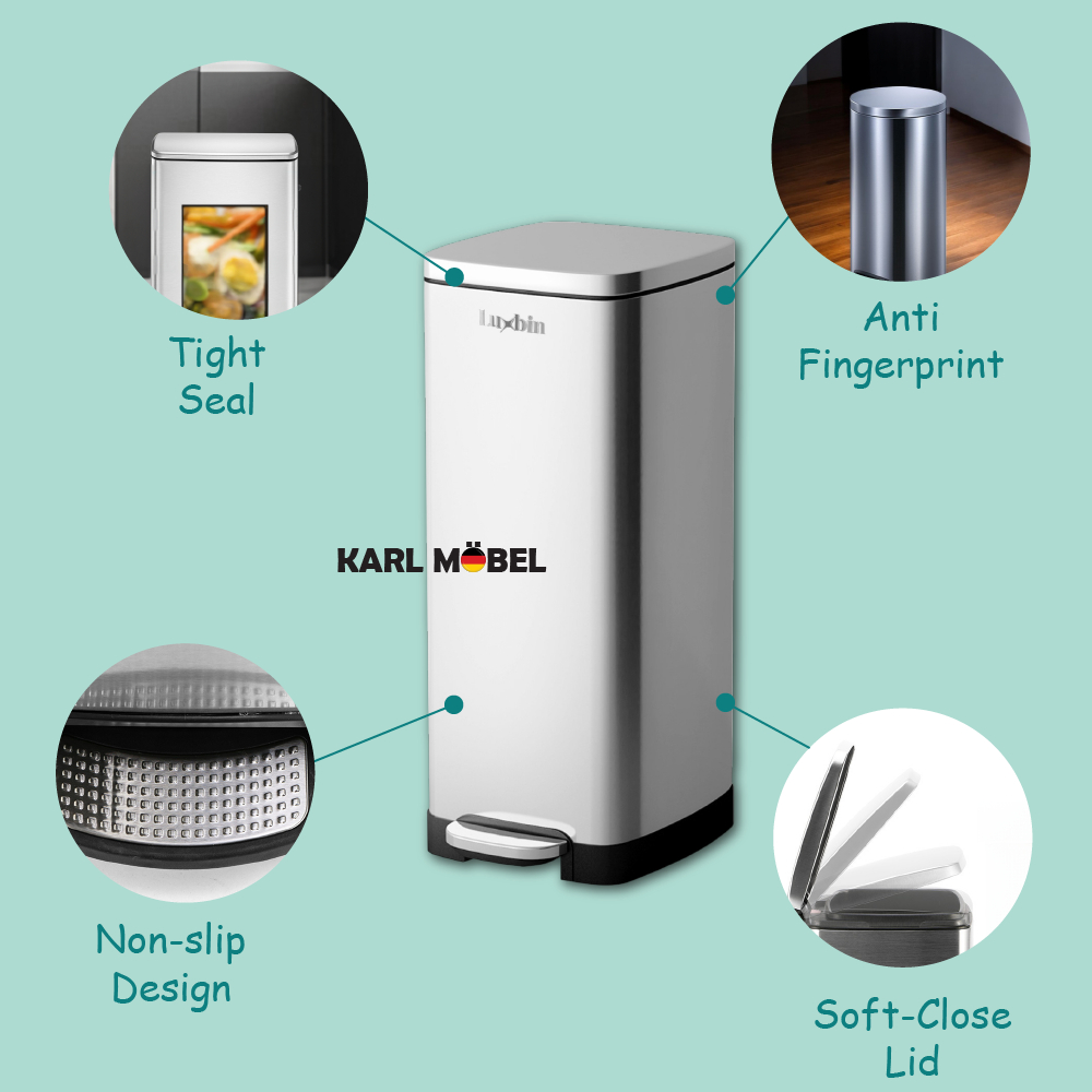 Luxbin™ Tong Sampah Bertutup Dapur Dustbin Kitchen Large 20L 30L 50L Pedal Dustbin Stainless Steel Trash Bin Rubbish Bin