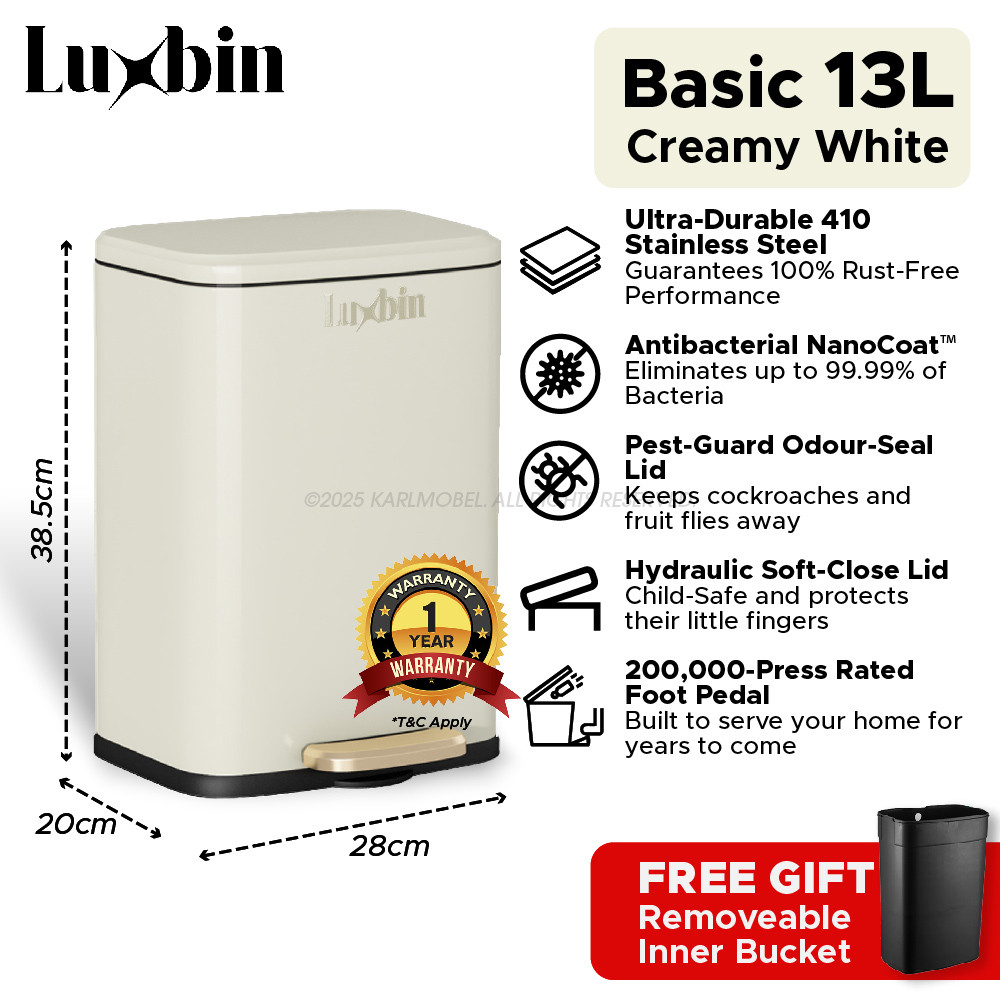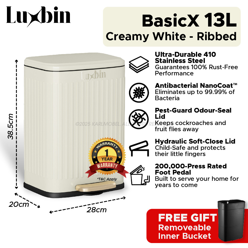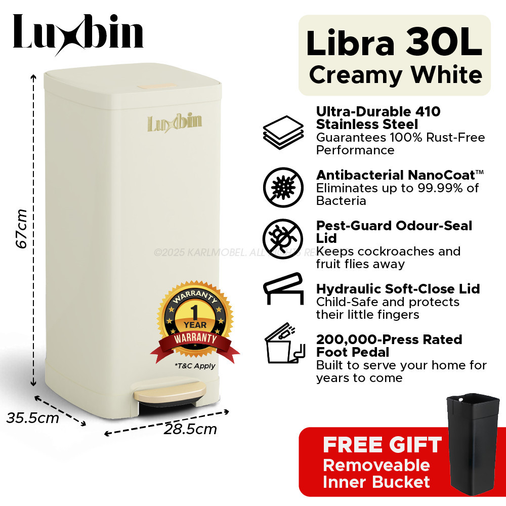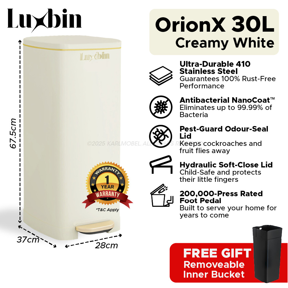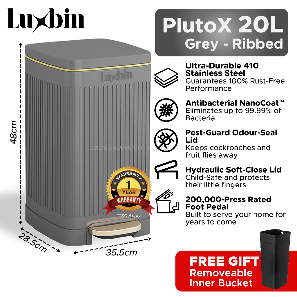 Luxbin™ Tong Sampah Bertutup Dapur Dustbin Kitchen Large 20L 30L 50L Pedal Dustbin Stainless Steel Trash Bin Rubbish Bin