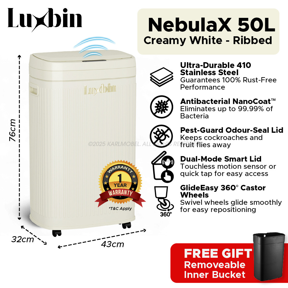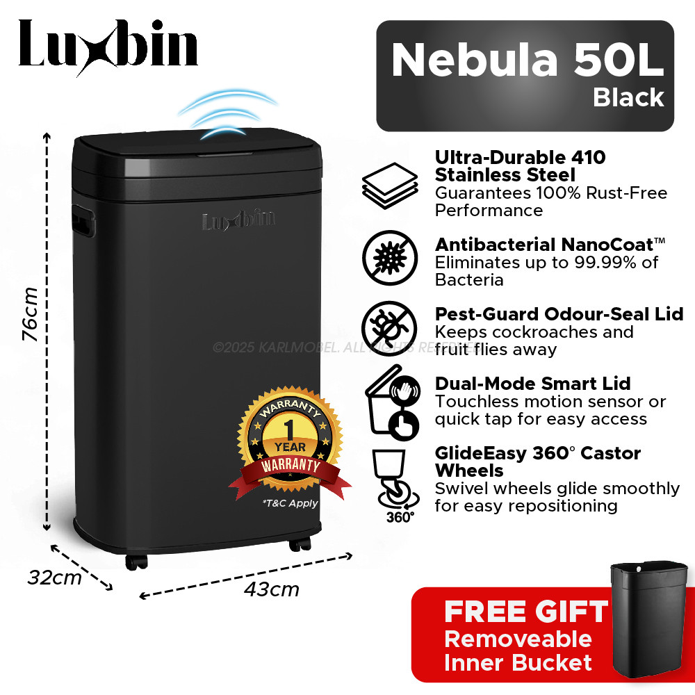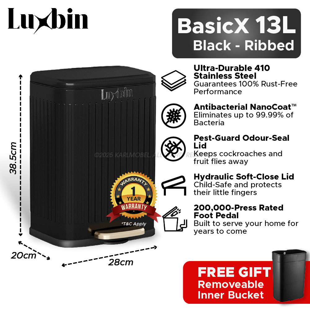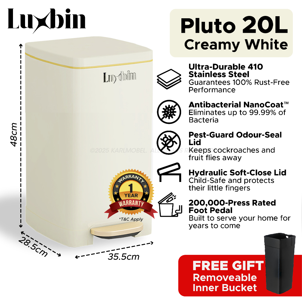Luxbin™ Tong Sampah Bertutup Dapur Dustbin Kitchen Large 20L 30L 50L Pedal Dustbin Stainless Steel Trash Bin Rubbish Bin