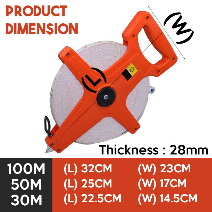 30M/50M/100M Fiberglass Measuring Tape A-Type Retractable Portable Metric Measuring Tool Open Reel Dual Sided Measure