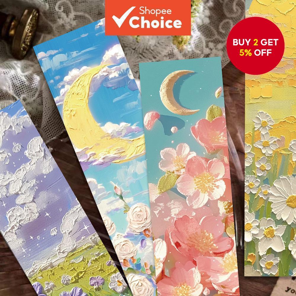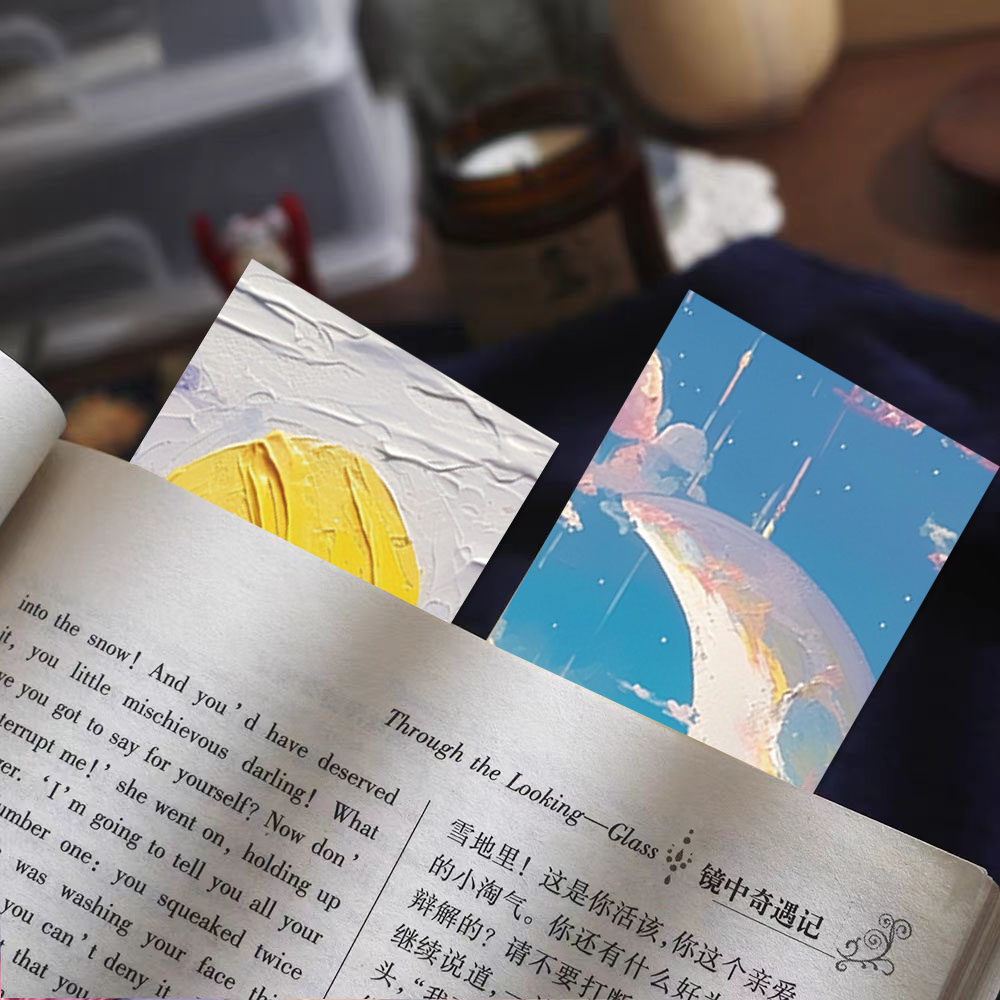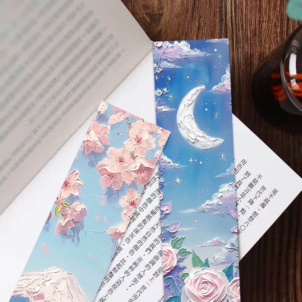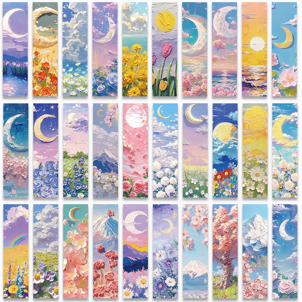 30PCS Beautiful Bookmarks Emboss Oil Painting Style Paper Bookmarks Fairy Tale Scenery Student Stationery