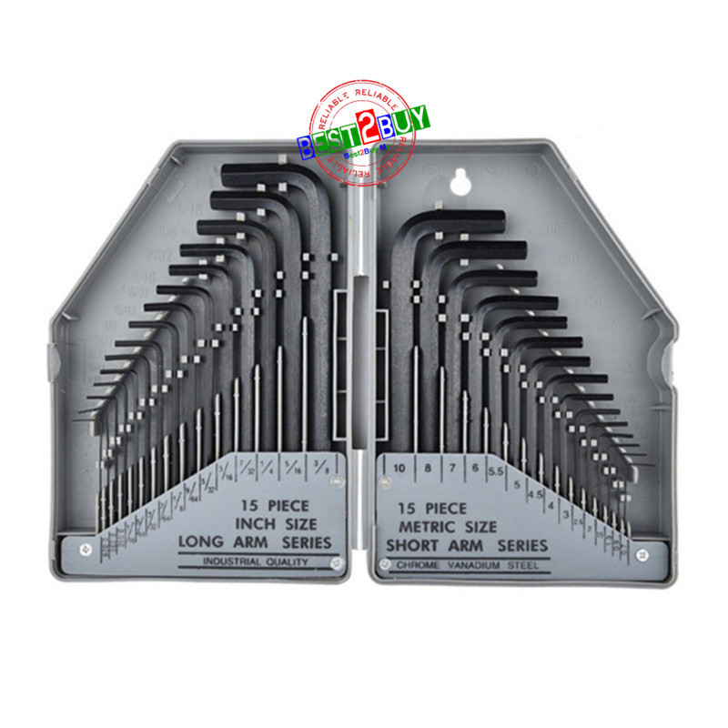 30Pcs Hex for Allen Key Wrench Set 0.028"- 3/8" Inch & 0.7mm-10mm Chromium-vanadium Steel Spanner Long Arm Allen Key