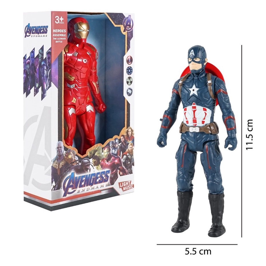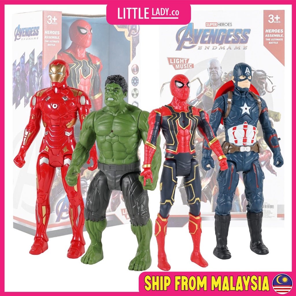 30cm Avengers Movie Mainan Marvel Superheroe Hulk Captain America Ironman Thanos Action Figure Toy Music & LED Light