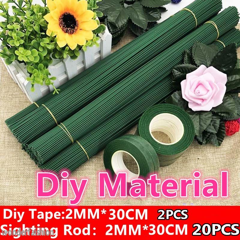 30cm Flower Pole Simulated Bouquet Flower Stem Green Handmade Tape Diy Material Set Iron Wire Rose Flower Pole /DIY Graduation Valentine Gift Birthday