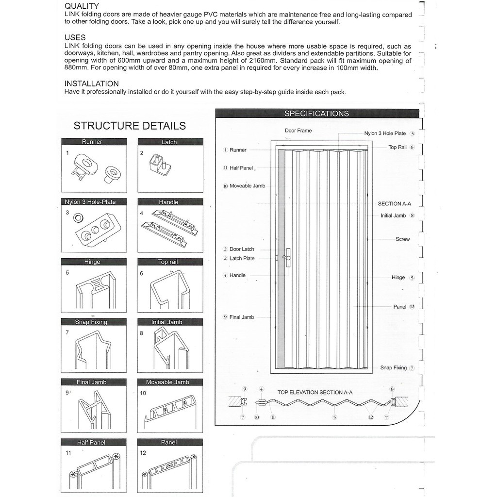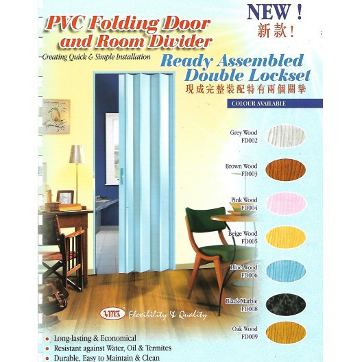 31" or 33" x 82" PINTU LIPAT PVC / PVC FOLDING DOOR