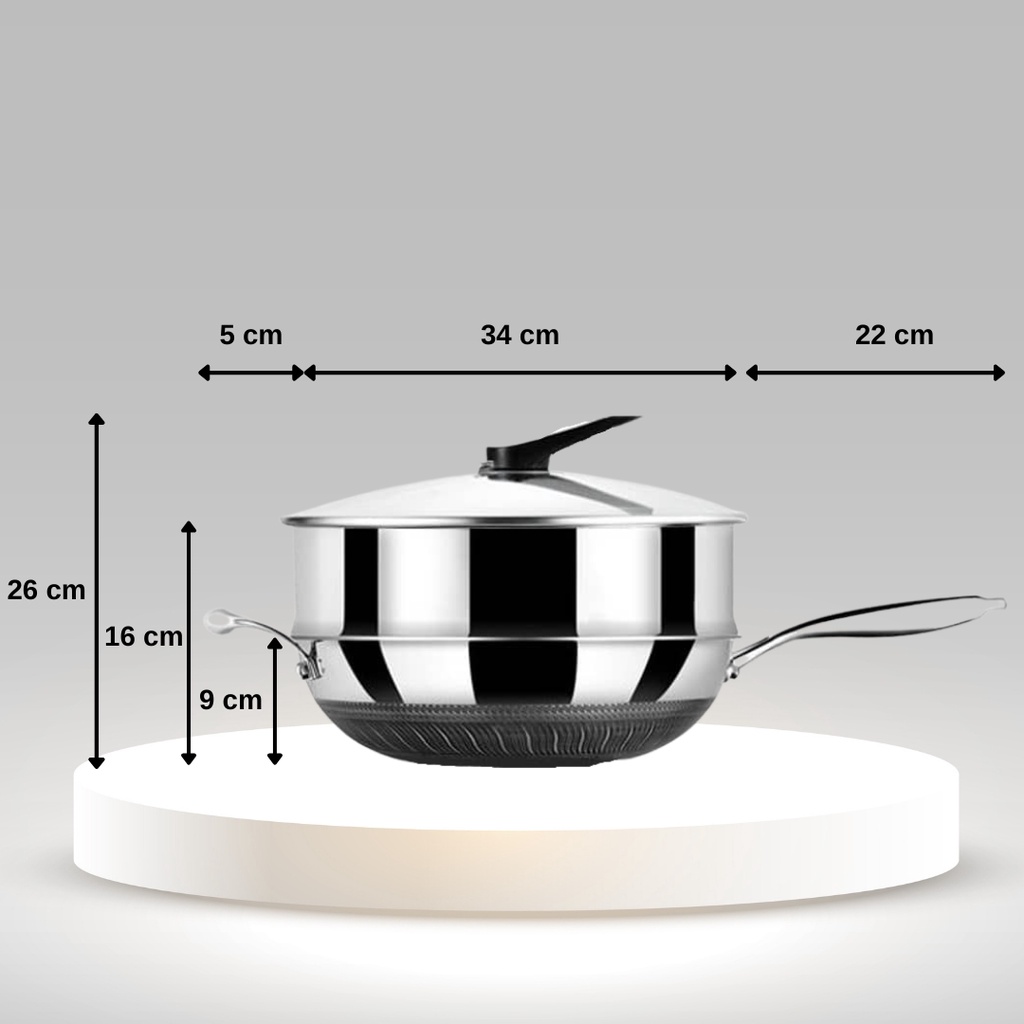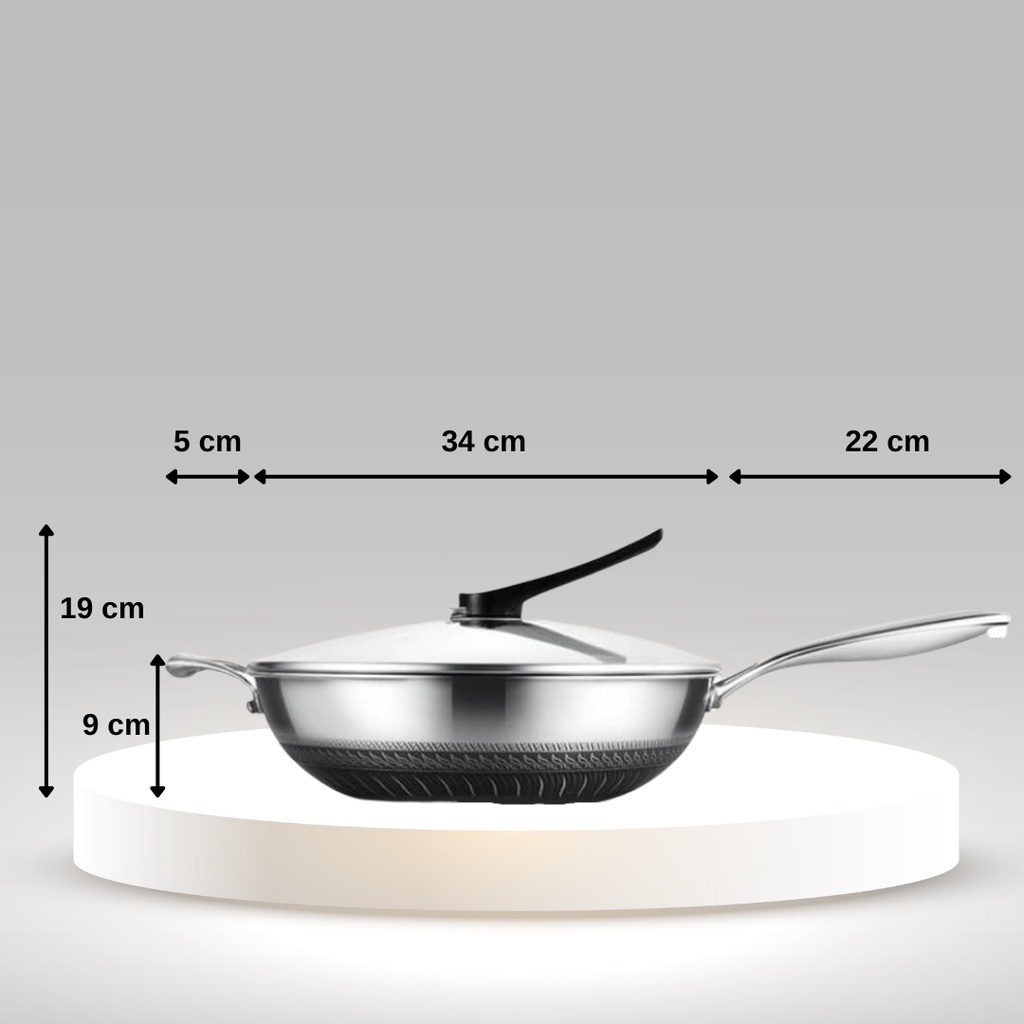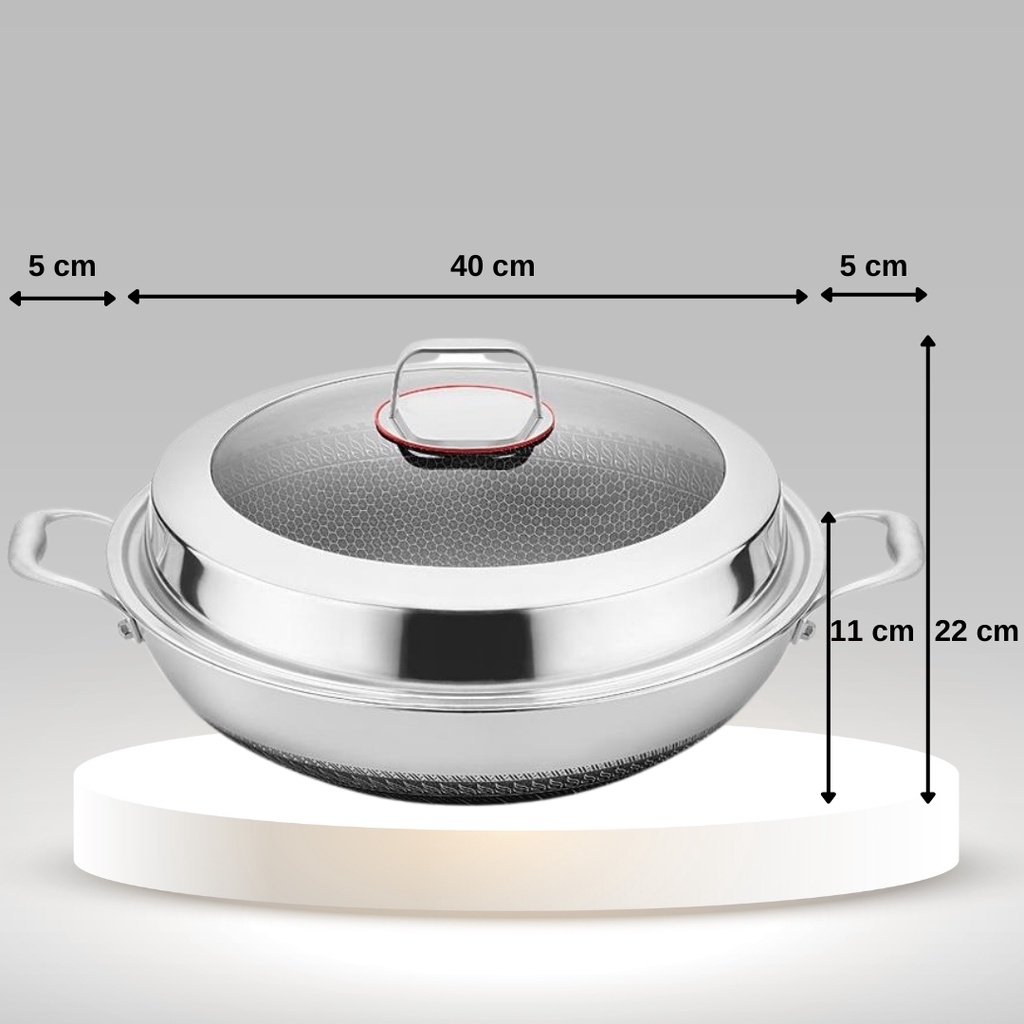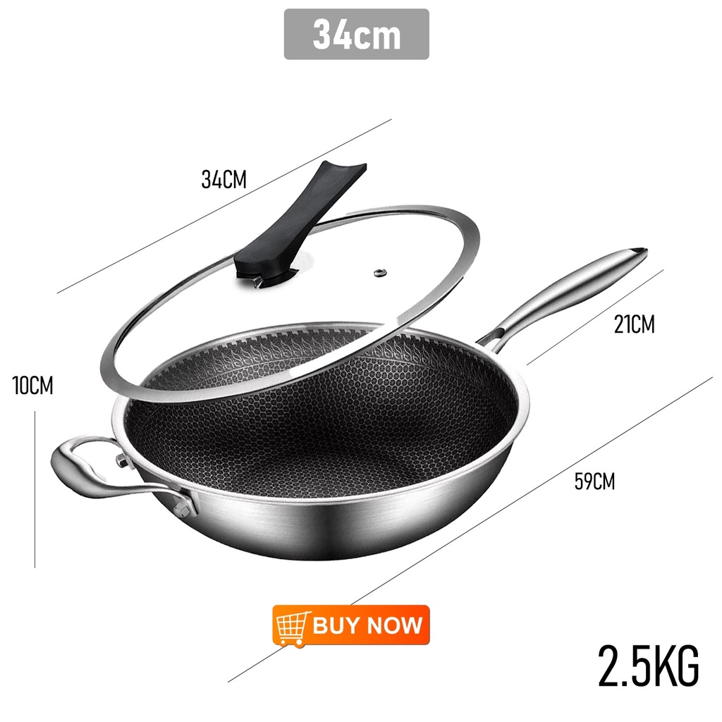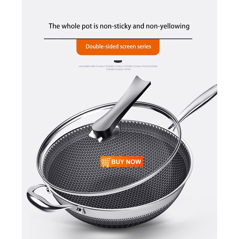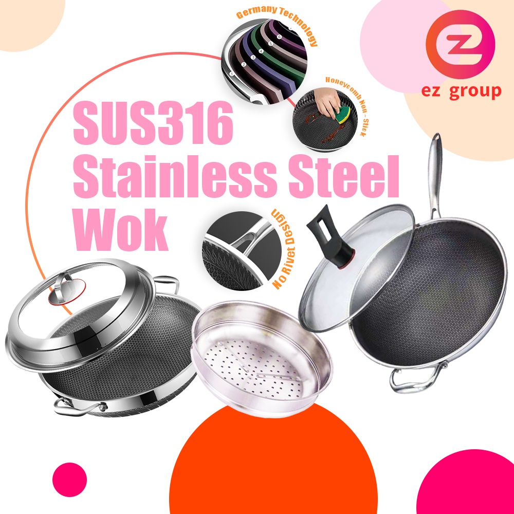 316 Stainless Steel Wok 42cm Non Stick Wok Honeycomb Wok Frying Wok Cookware Kuali Non Stick Kuali Wok