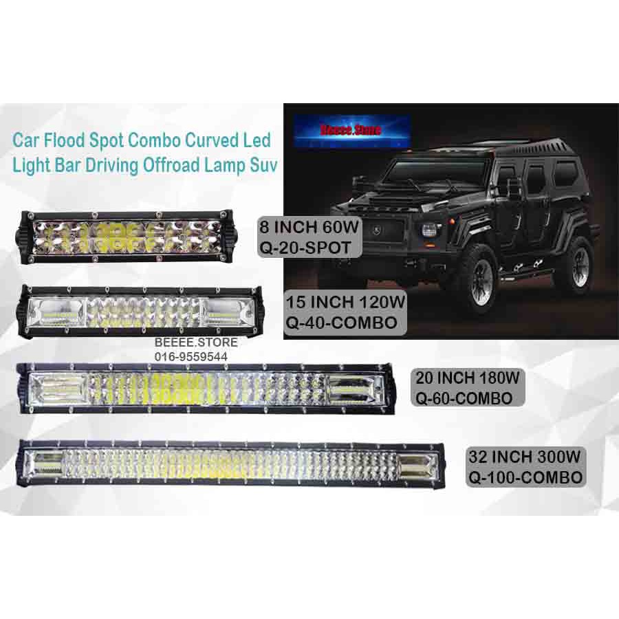 32" / 20" / 15" / 8" INCH 100 / 60 / 40 / 20 LIGHTS 300W 180W / 120W / 60W LED Car Flood Spot Combo Curved Led Light Bar