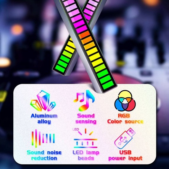 32 LED RGB Voice Activated Light Gaming Bit Music Sound Lamp RGB Colour Ambient Desktop Lampu Muzik