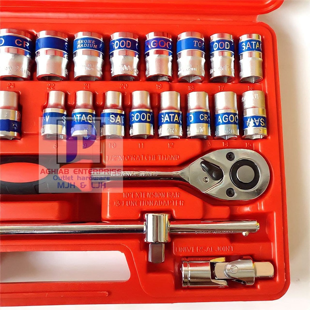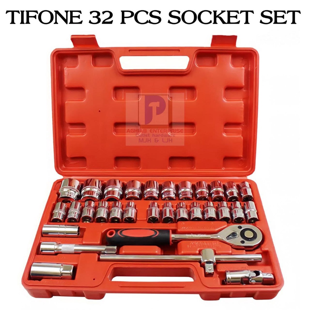 32pcs 1/2 Inch Ratchet Box Socket Set Box Set Spanner Set Wrench Spanar Set ( Label Blue / Chrome )