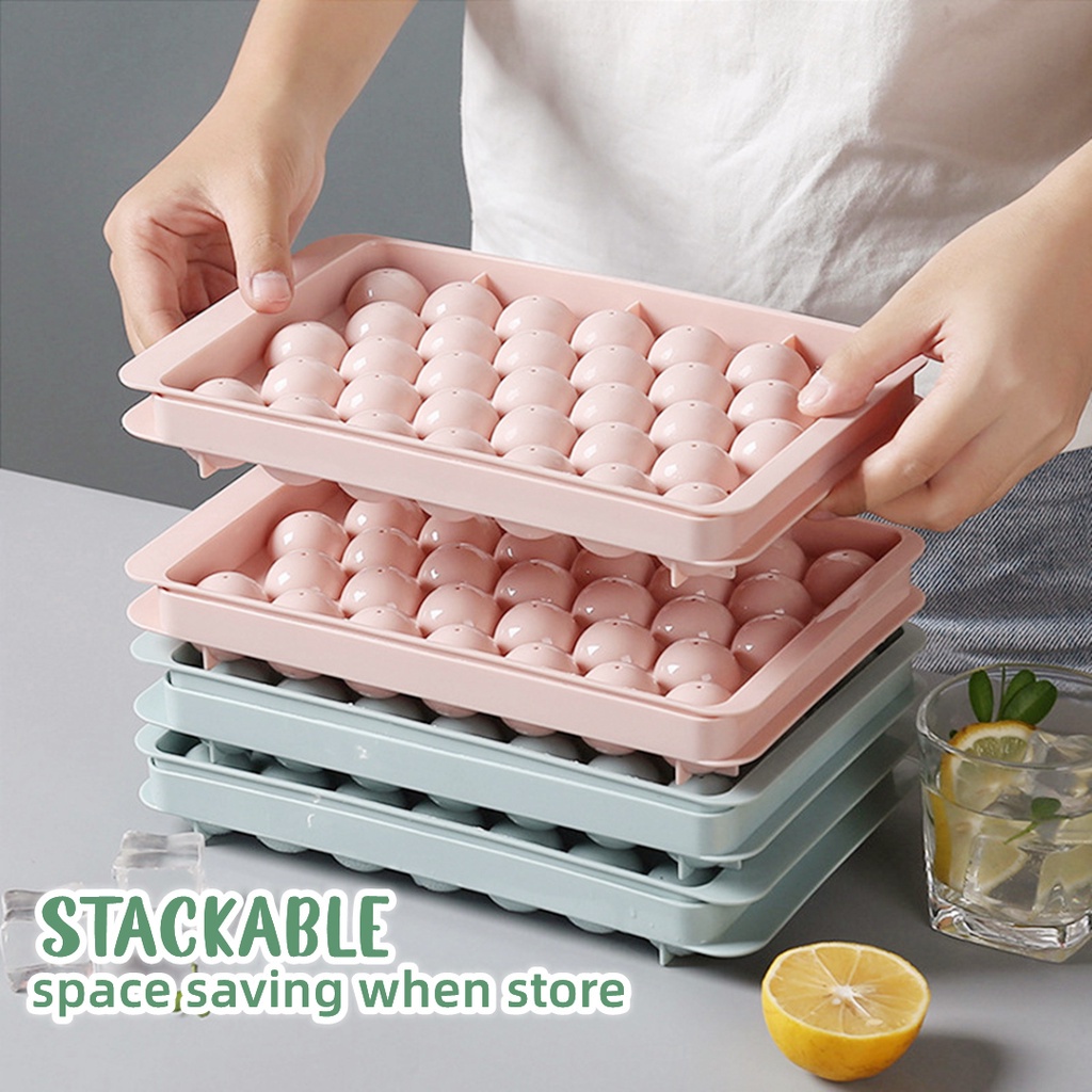33 Grids Round Ice Ball Tray with Cover DIY Homemade Ice Cube Box Jelly Mold Maker Drink Bar Frozen Storage Ice Box