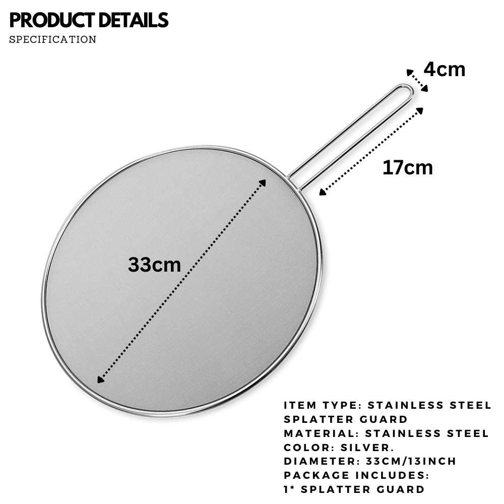 33cm Stainless Steel Splatter Screen with Handle and Lids Cover for Frying Pan Covers Oil Splash/ Penapis minyak masak