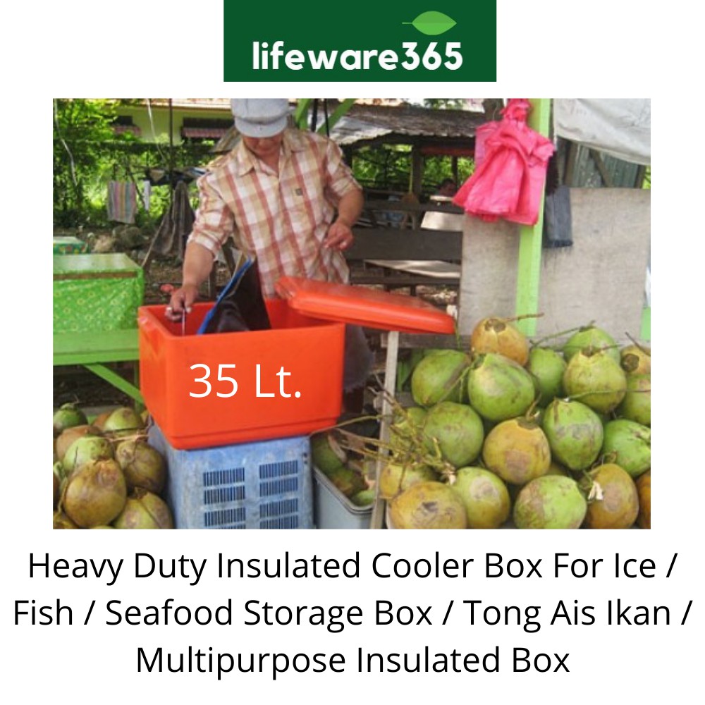 35L Heavy Duty Cooler Box / Tong Ais / Tong Ais Oren / Tong Ikan / Ice Box / Fish Box / Seafood Box / Insulated Box