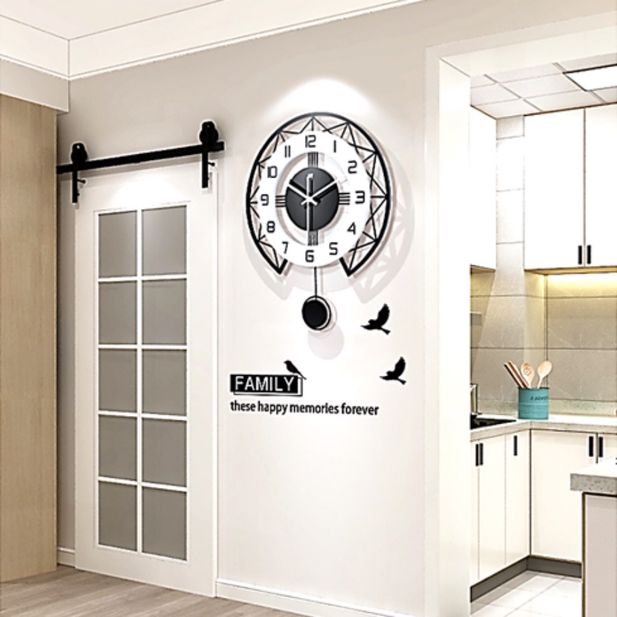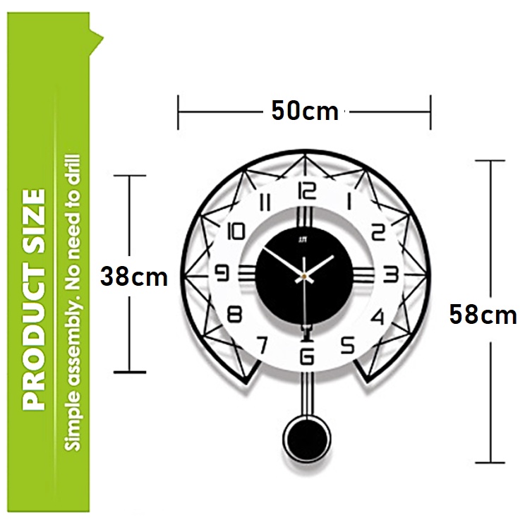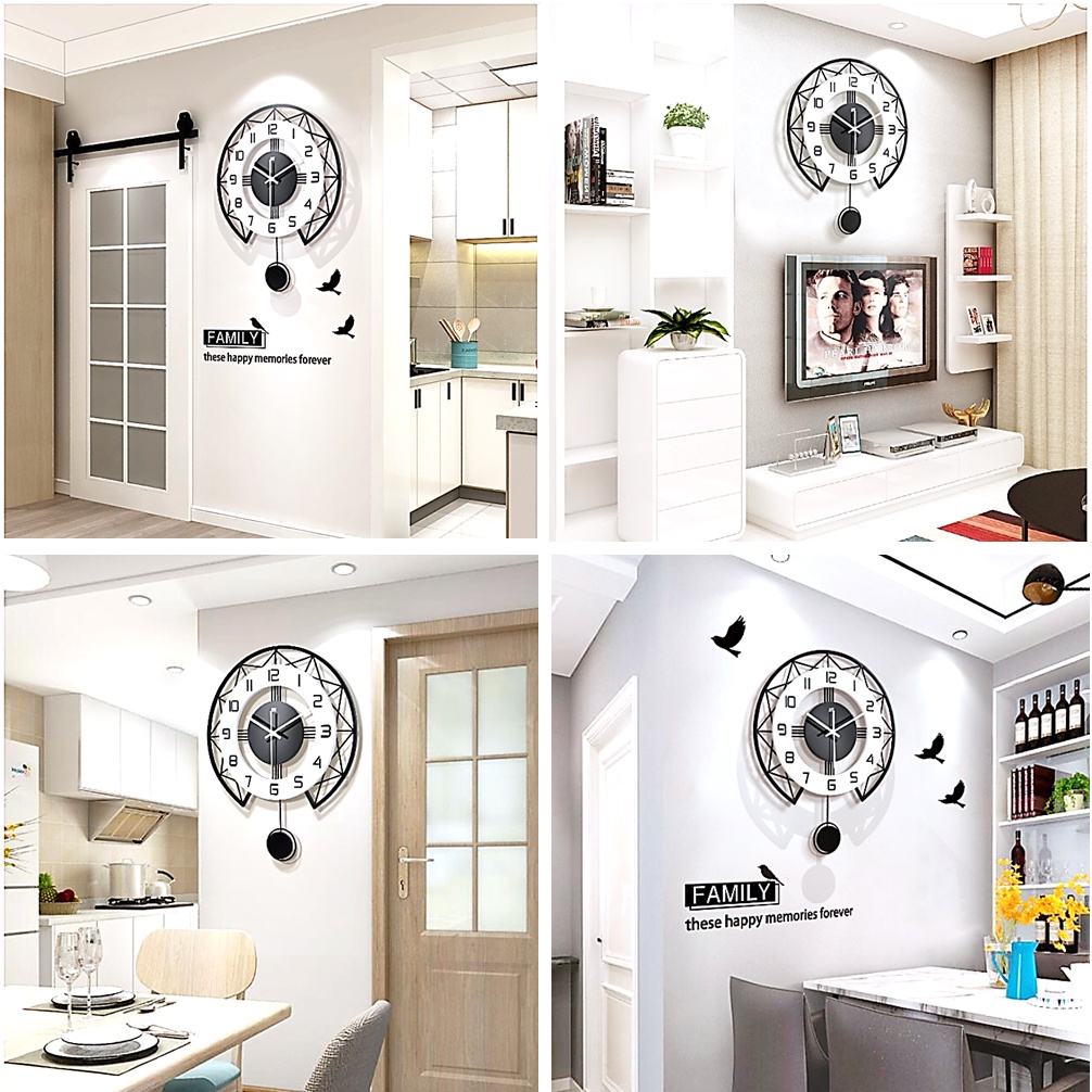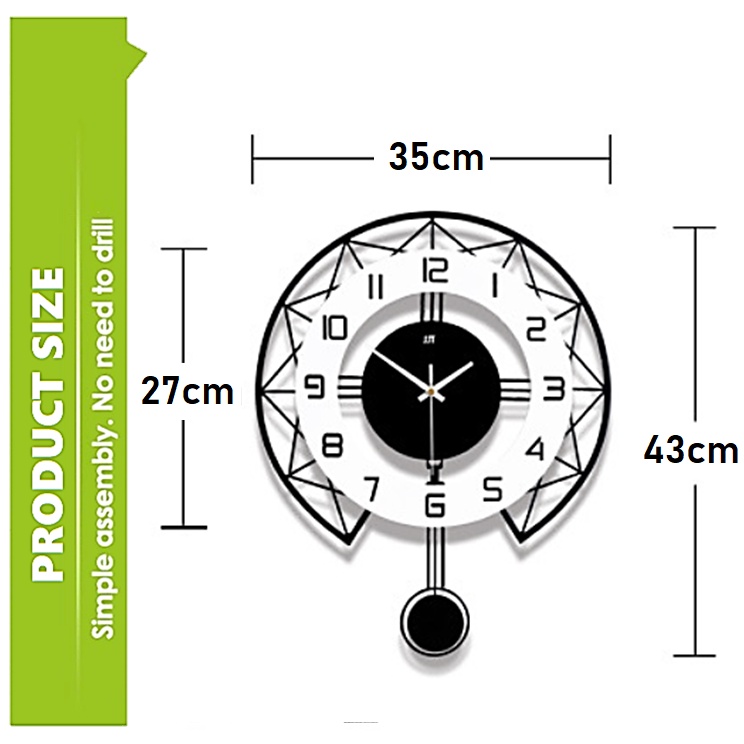 35cm 43cm 50mc Silent Non-Ticking 3D DIY Pendulum Horloge Swing Wall Clock Home Office Living Room / Jam Dinding