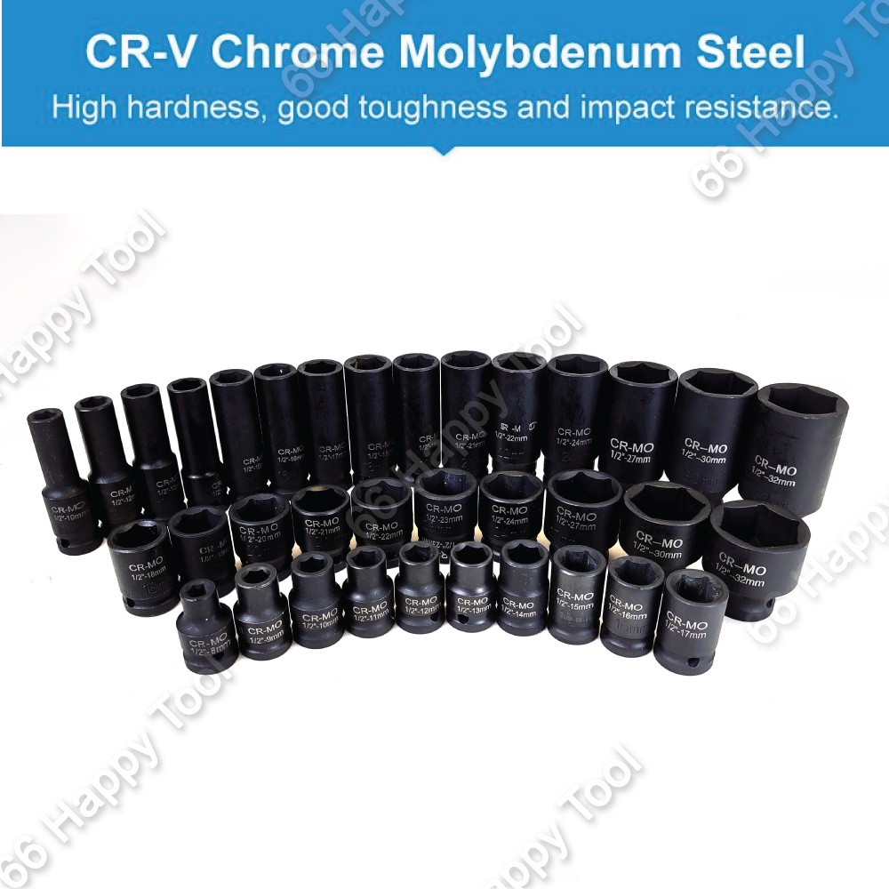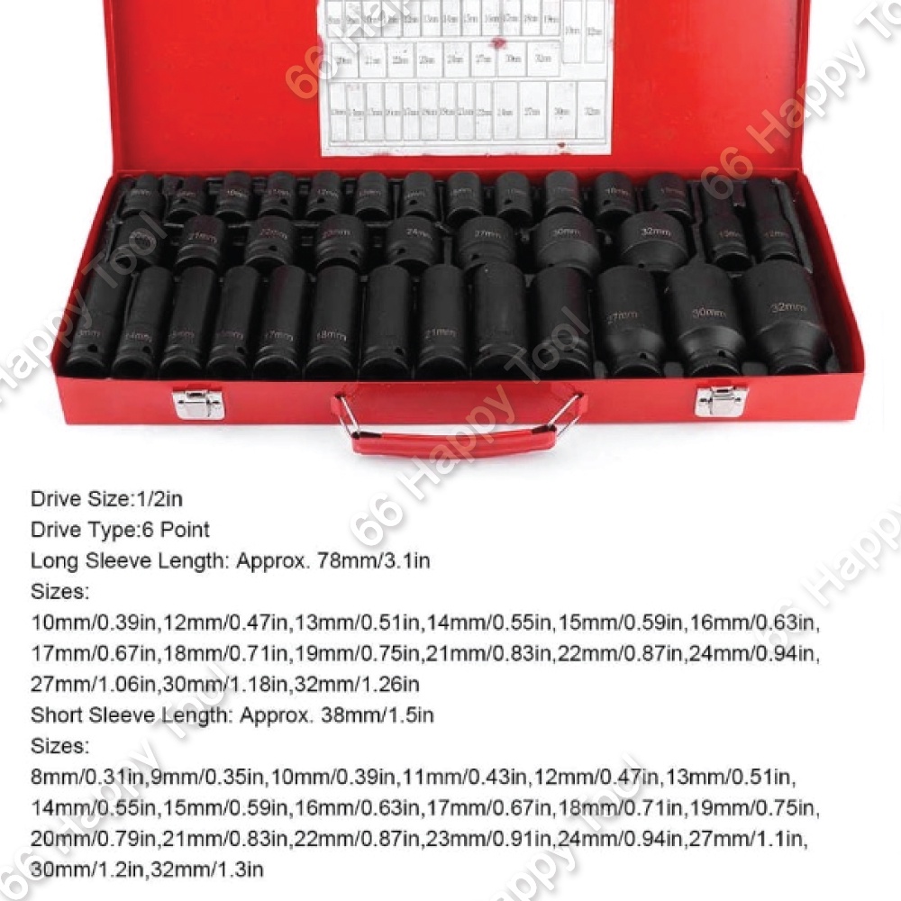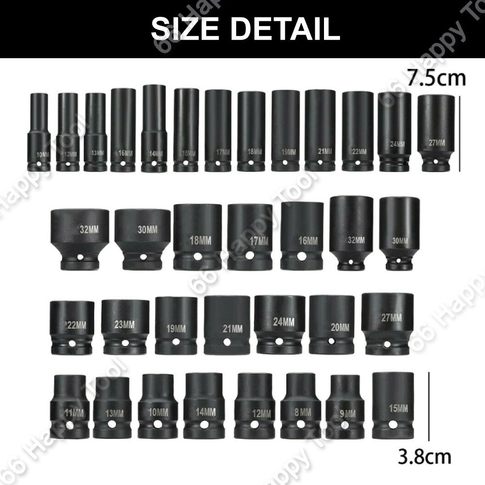 35pcs 1/2" 8-32mm Deep Impact Ratchet Wrench Socket Set Metric Tool Set Hex 6 Points Socket Sleeve Air Impact Socket