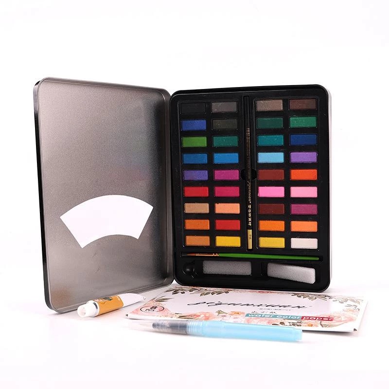 36 Colors Solid Watercolor Artist Paint Brush Set Painting Pigment Box Art Supplies Colour Cat Air Warna Berus