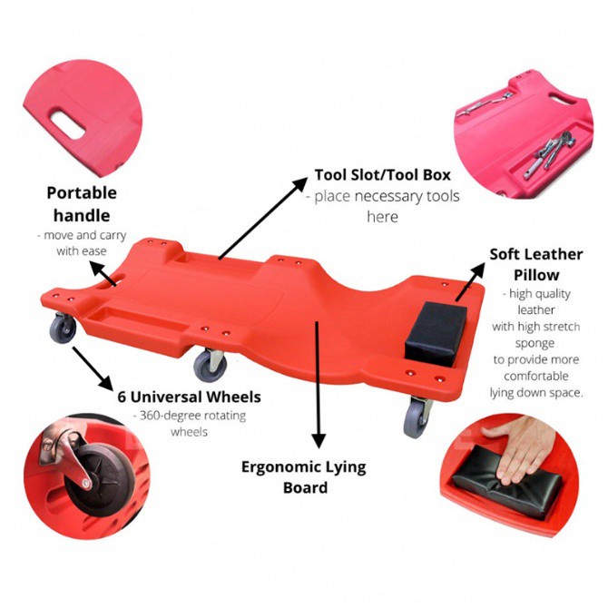 36" Mechanic Creeper Car Garage with 6 Swivel Wheels Mechanic Plastic Creeper Board Car Repair Undercarriage Creeper