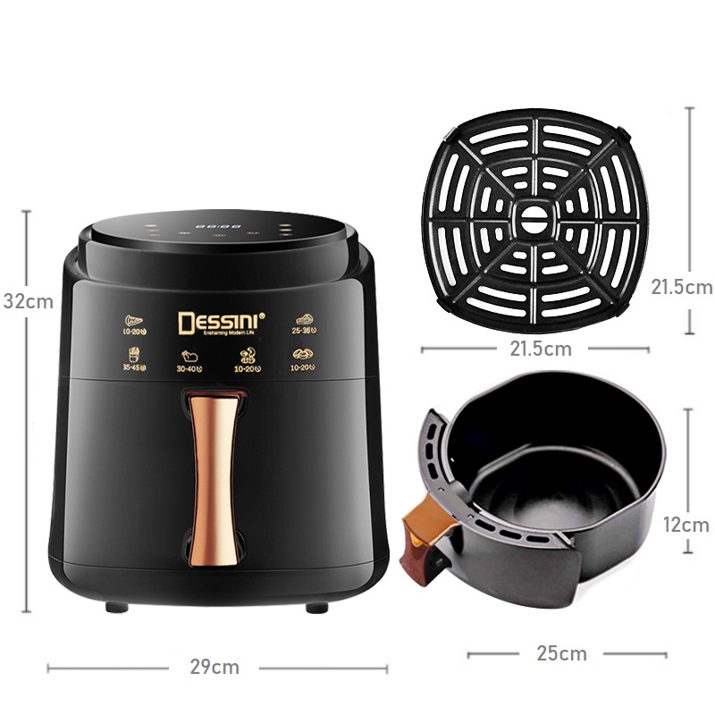DESSINI ITALY AF-60 Electric Oven Convection Air Fryer Toaster Timer Oil Free Roaster Breakfast Machine Ketuhar (6L)