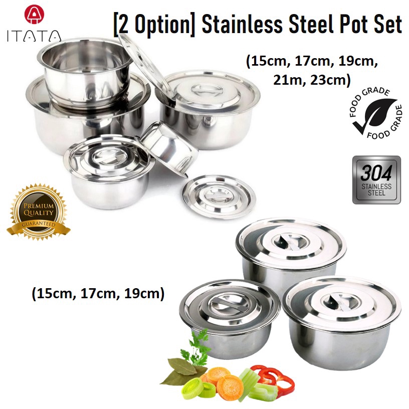 [Set Of 3/ Set Of 5] ITATA Conditioning Pot Stock Stainless Steel Hot Pot With Lid OR XunFa Silverhorse Periuk Masak