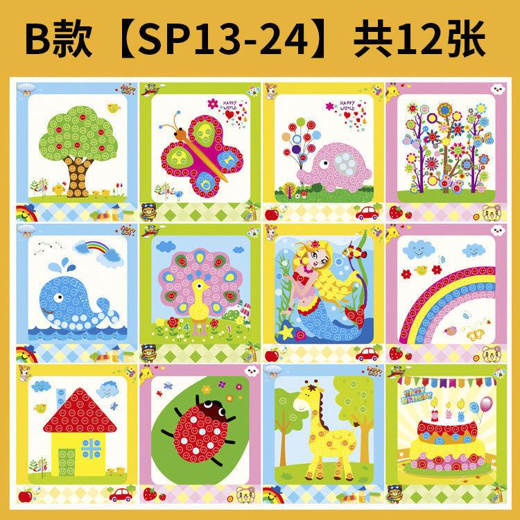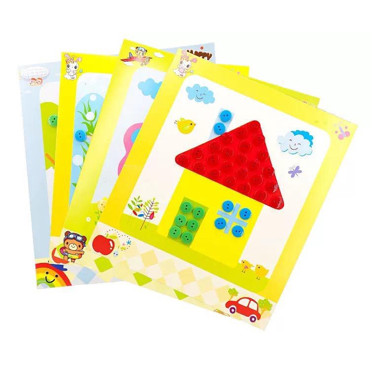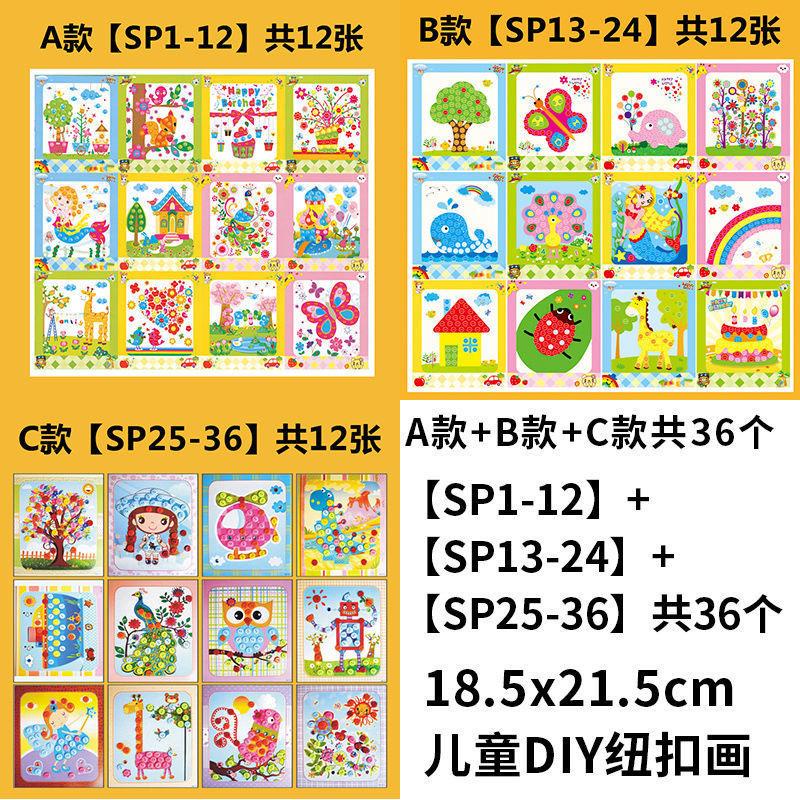 36 designs DIY Button Art Early Learning Hand craft for kid(with colorful self adhesive button)