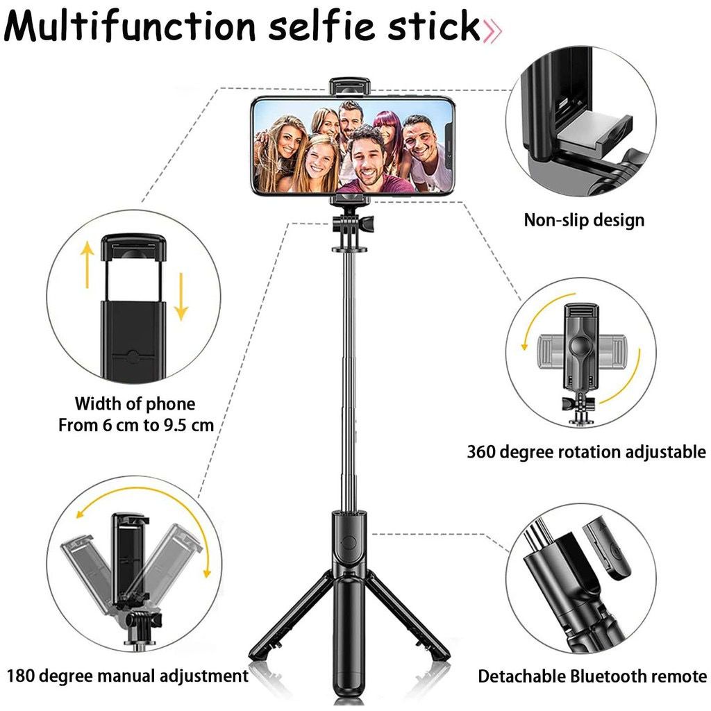 360° Rotate Selfie stick tripod 3 in 1 Wireless Bluetooth For iPhone Android Monopod Shutter Remote Extendable